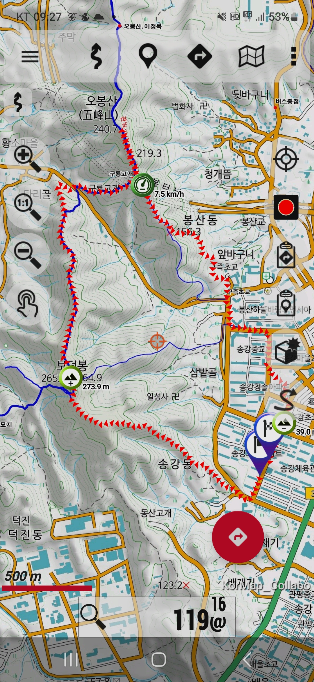 5월의 넷째 토욜(5/24) 오전 07시 24분 대전 유성구 송강동 한마을아파트를 출발해서