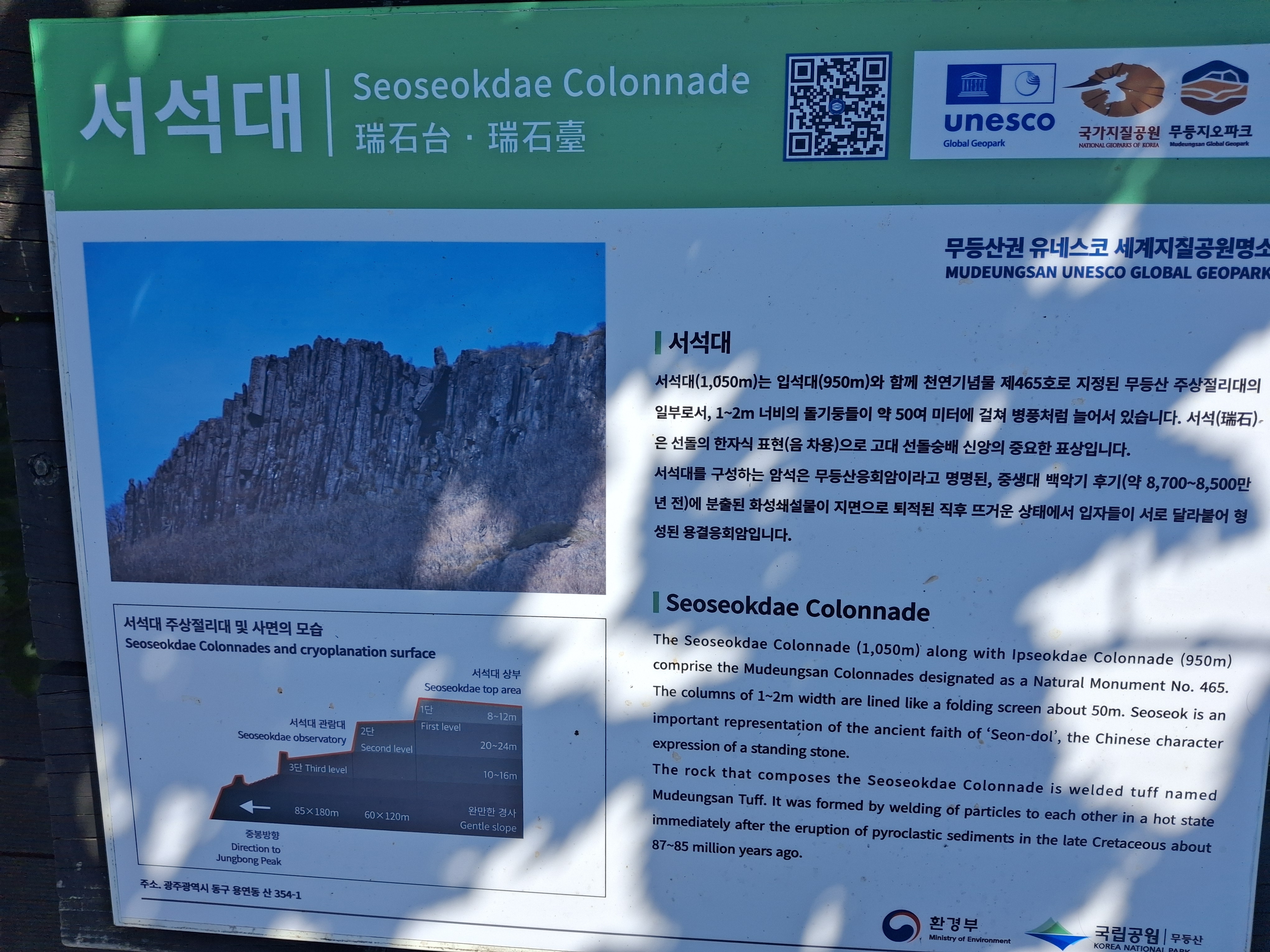 무등산 산정 가까이는 주상절리가 발달하여 기암괴석의 명소가 많다.