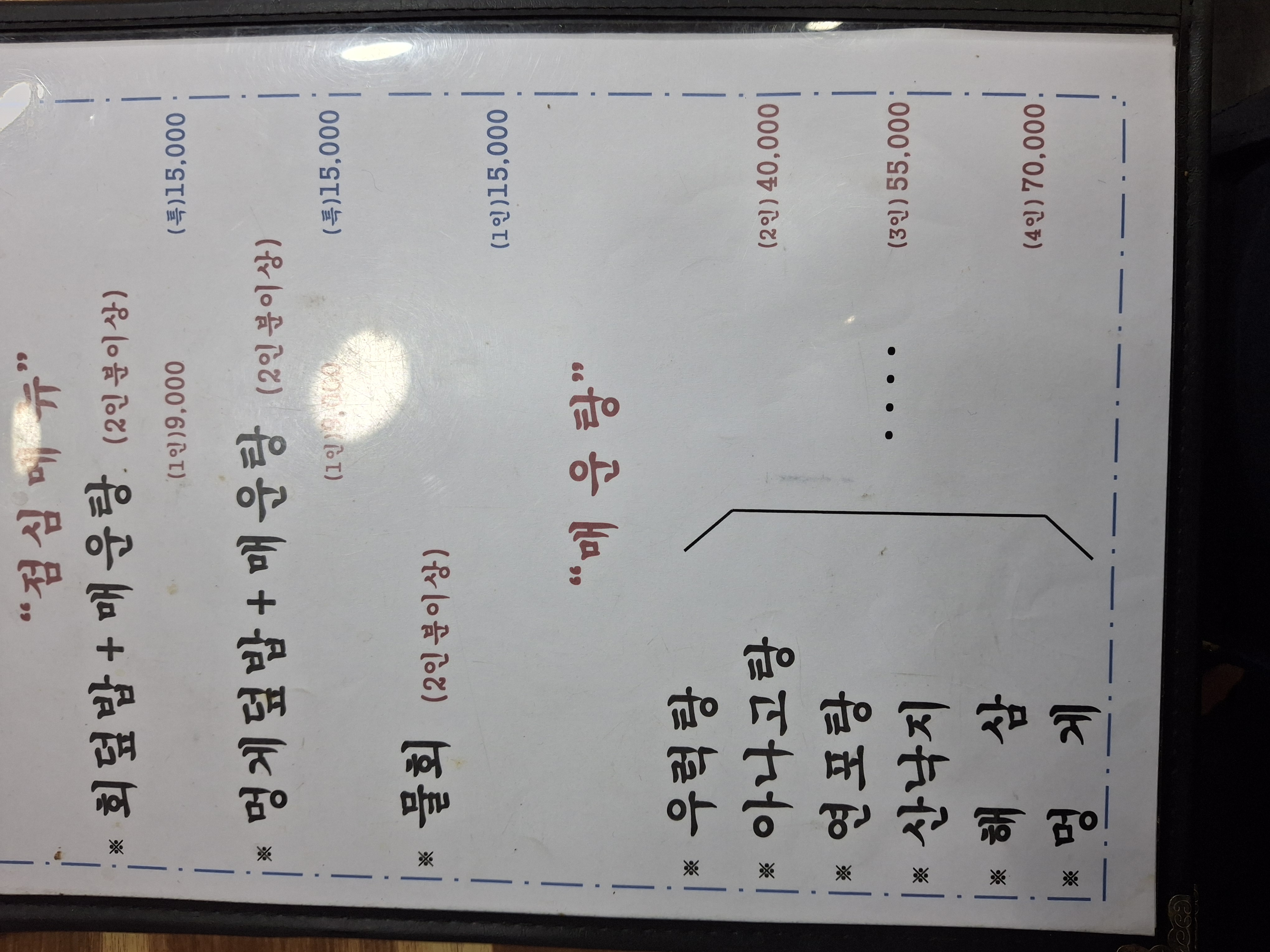 전어회 50,000원 / 해물물회 15,000원
