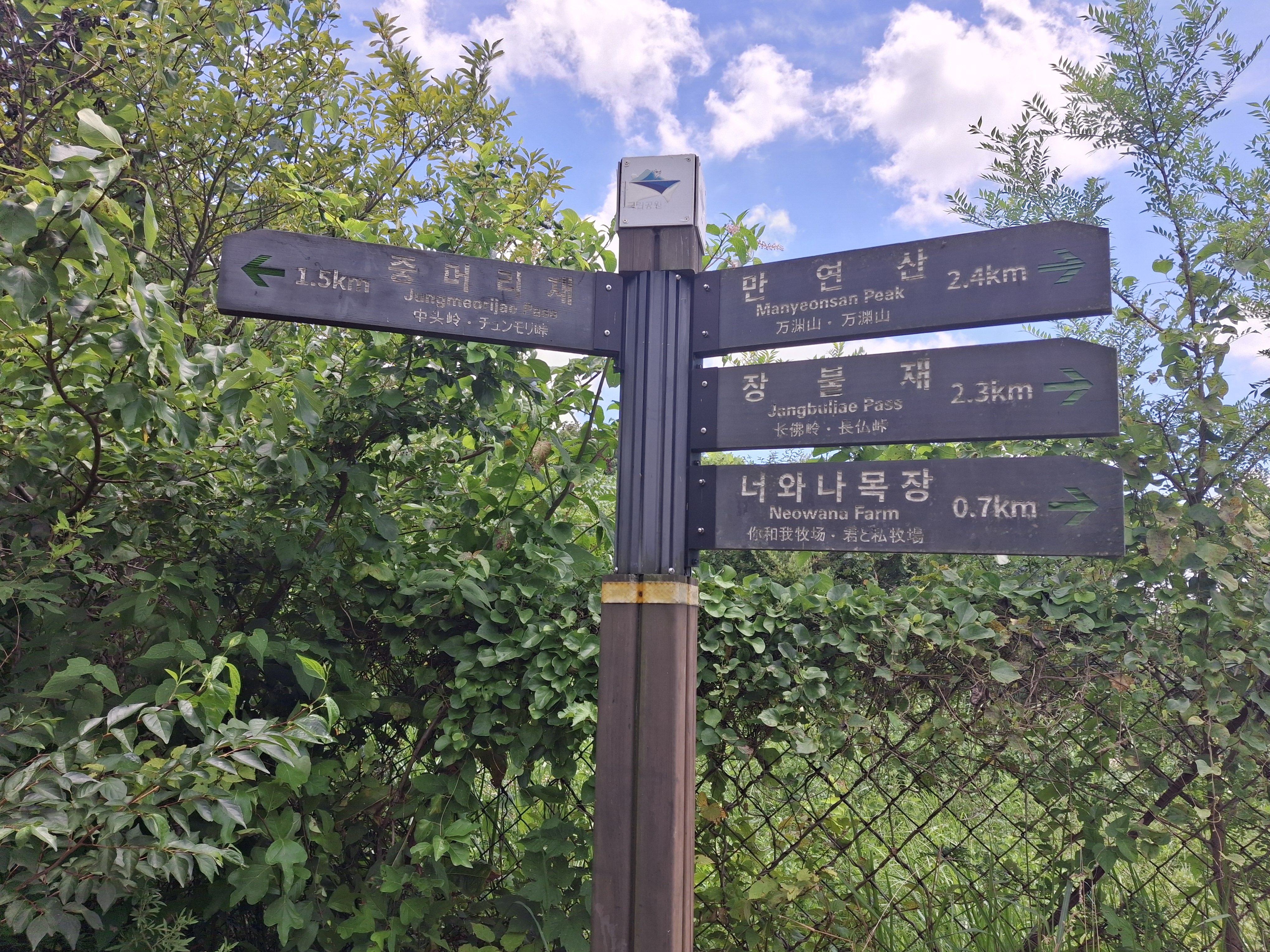중머리재 → 용추폭포 갈림길 → 화순 너와나목장