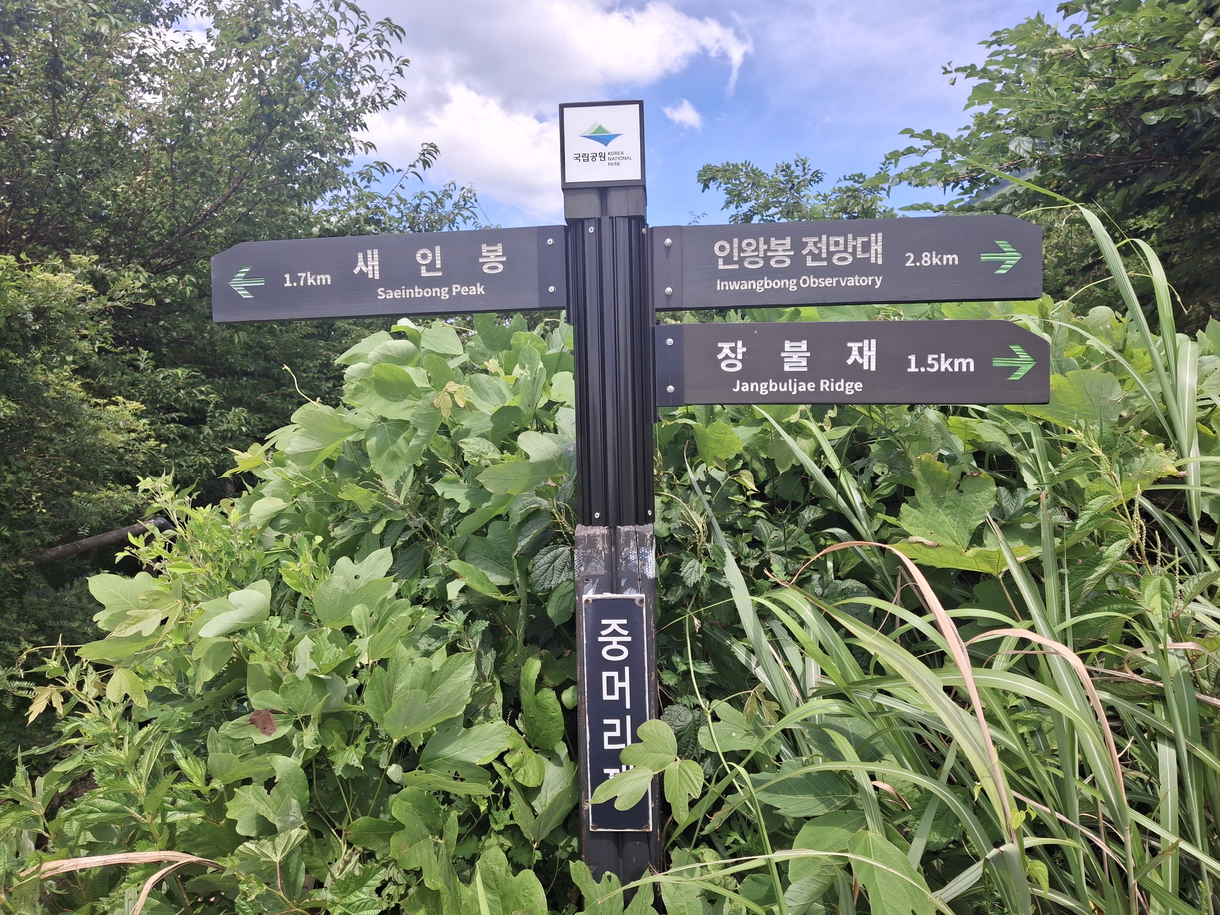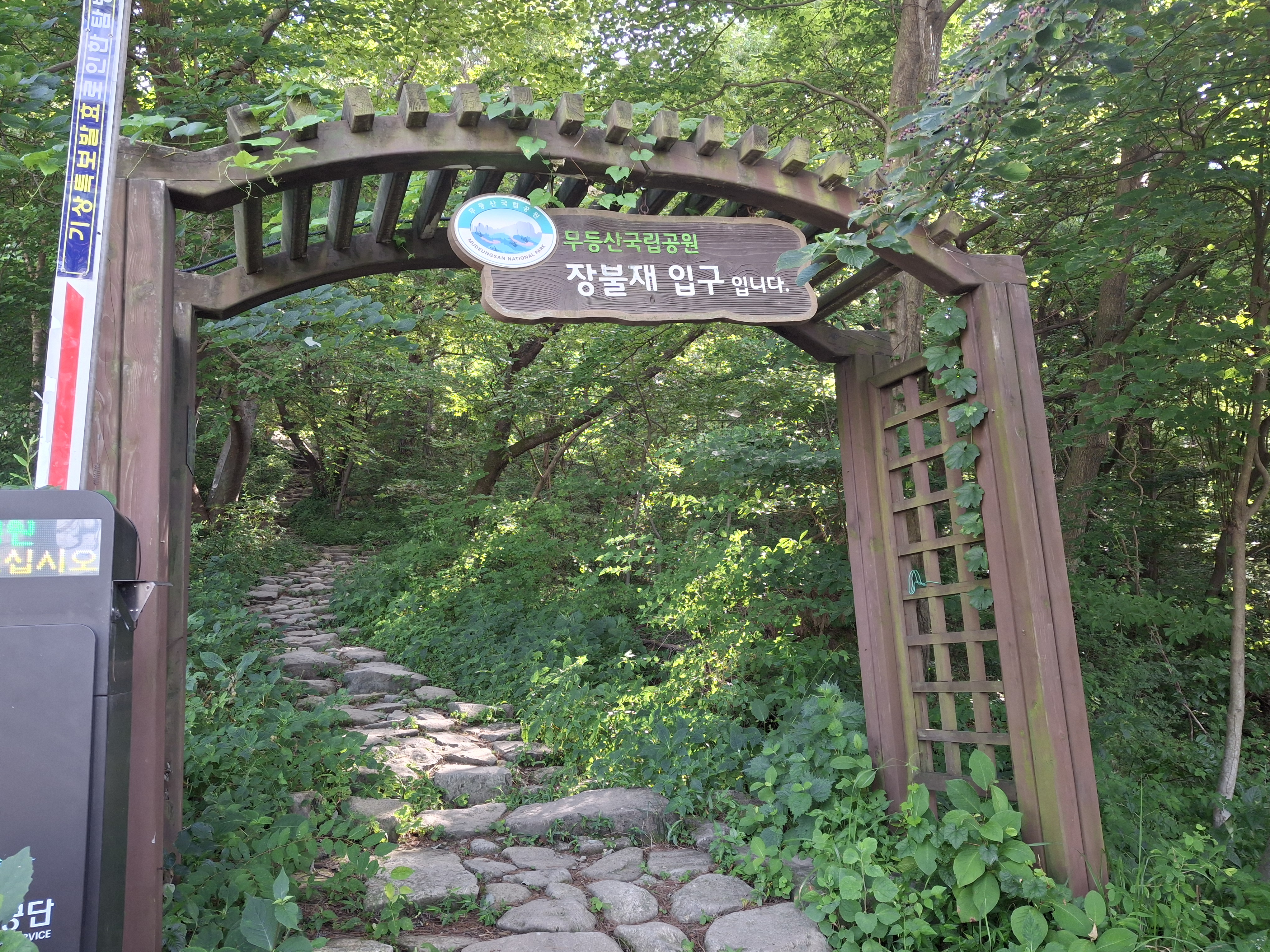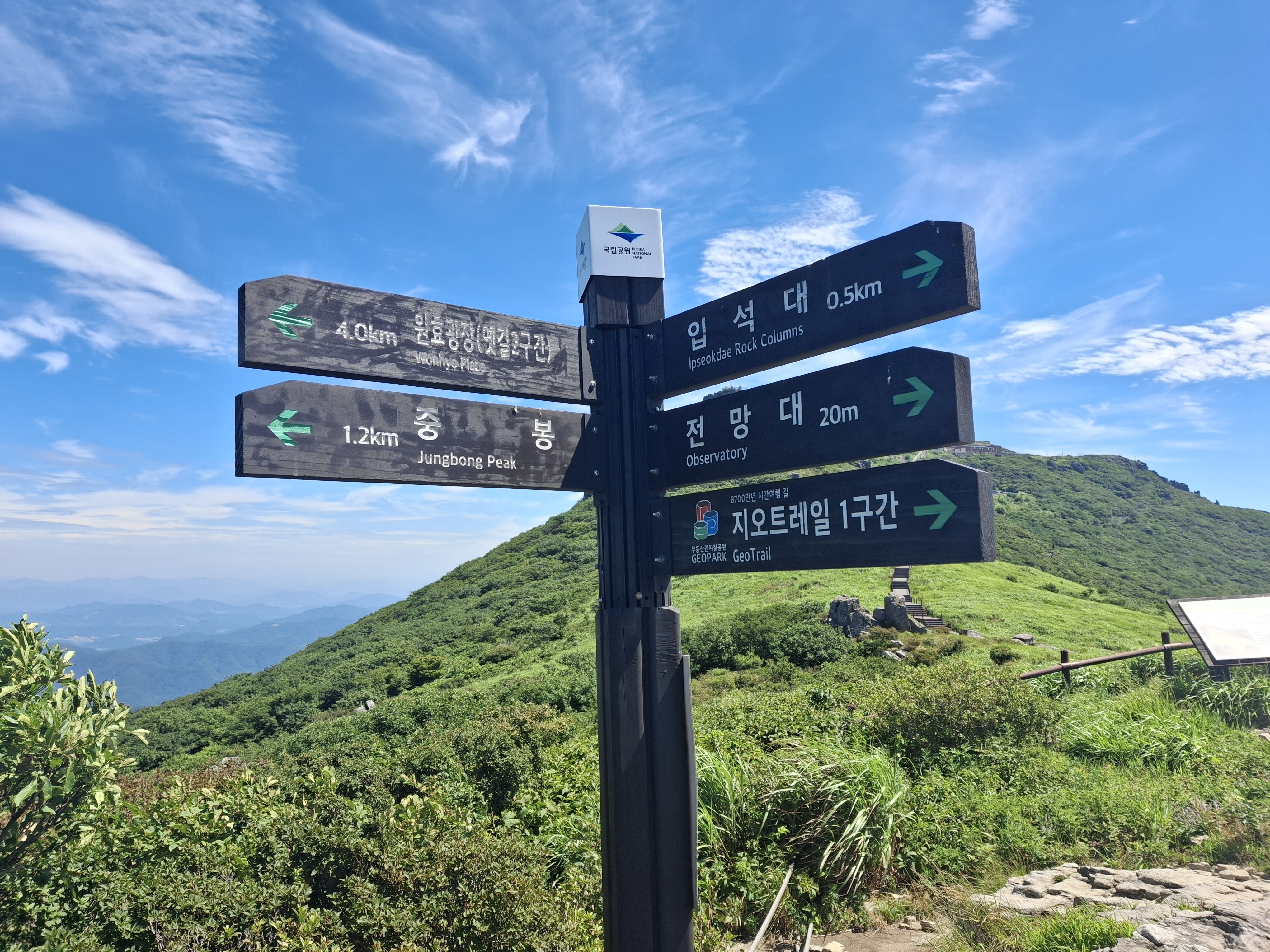 장불재 → 입석대(×1017m) → 서석대(×1102.8m) → 무등산 인왕봉(△1160.6m) 갈림길 →