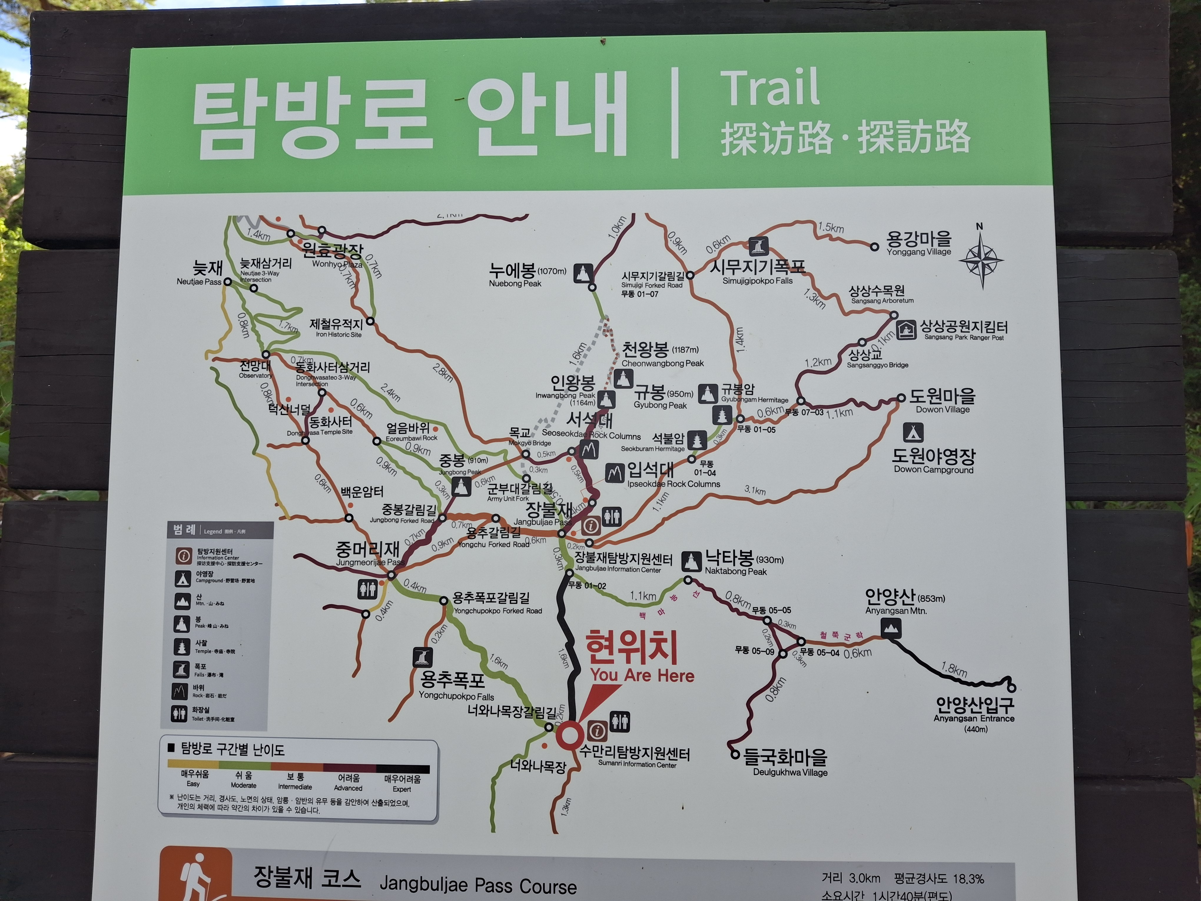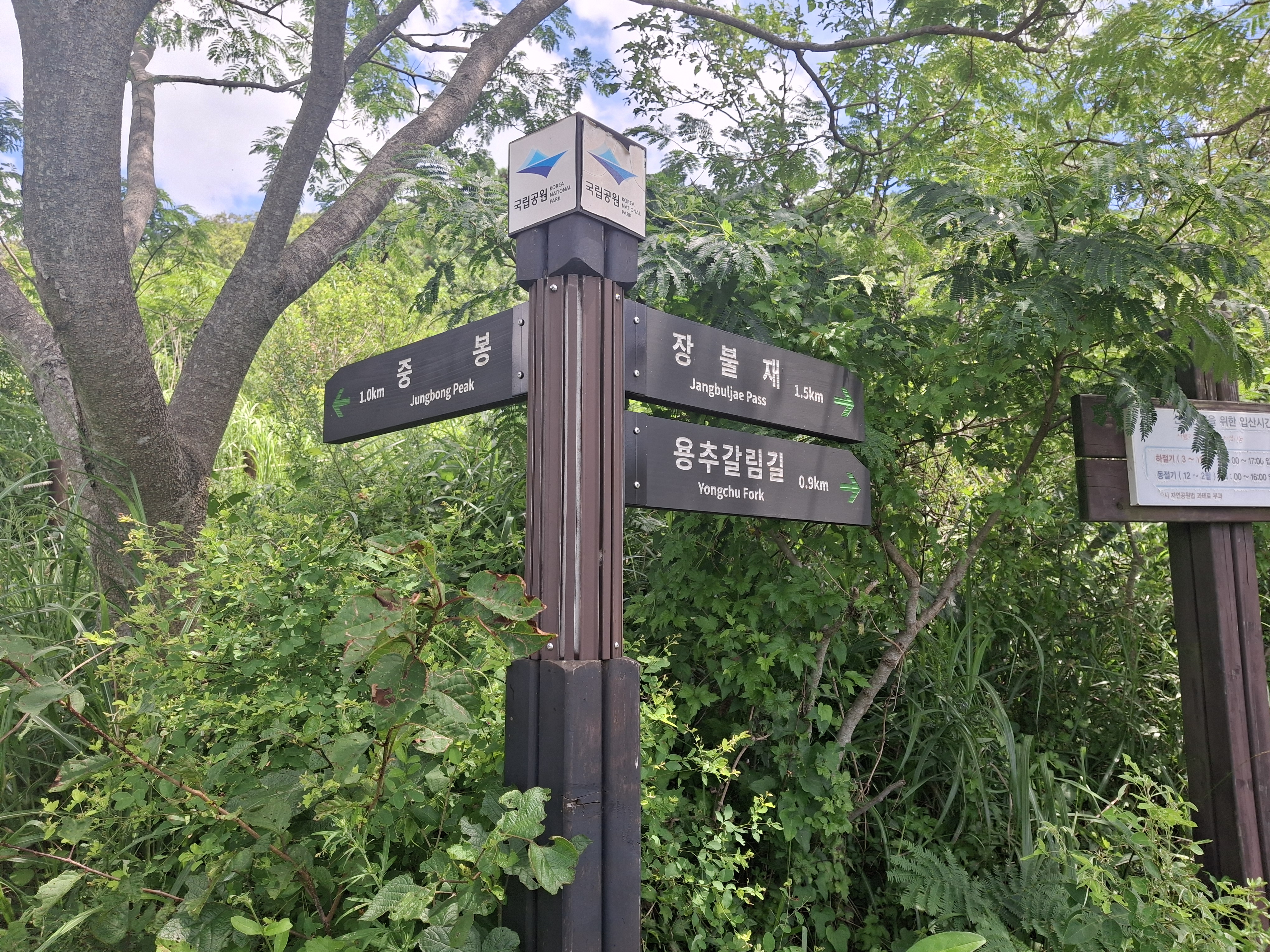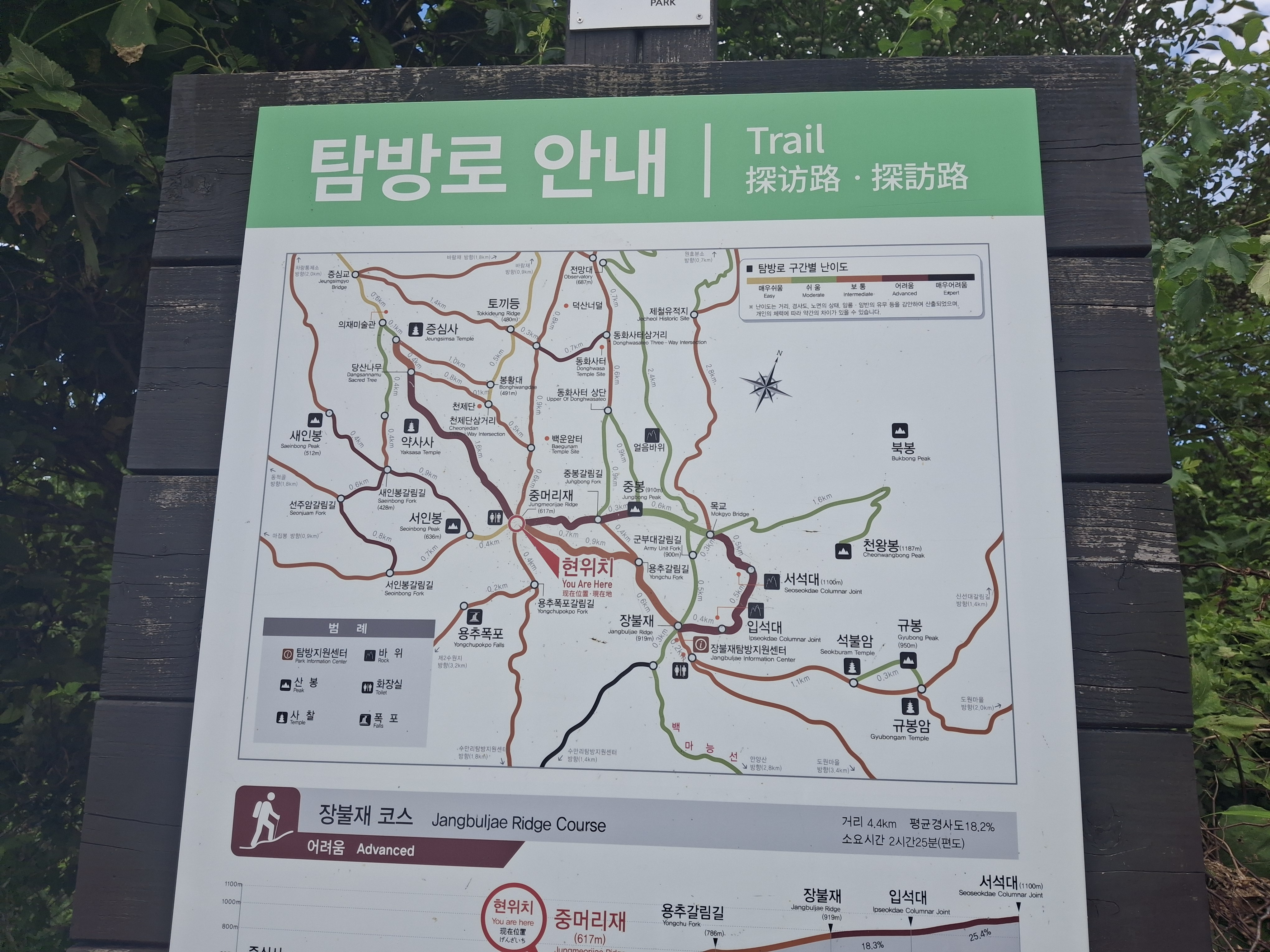장불재 → 입석대(×1017m) → 서석대(×1102.8m) → 무등산 인왕봉(△1160.6m) 갈림길 →