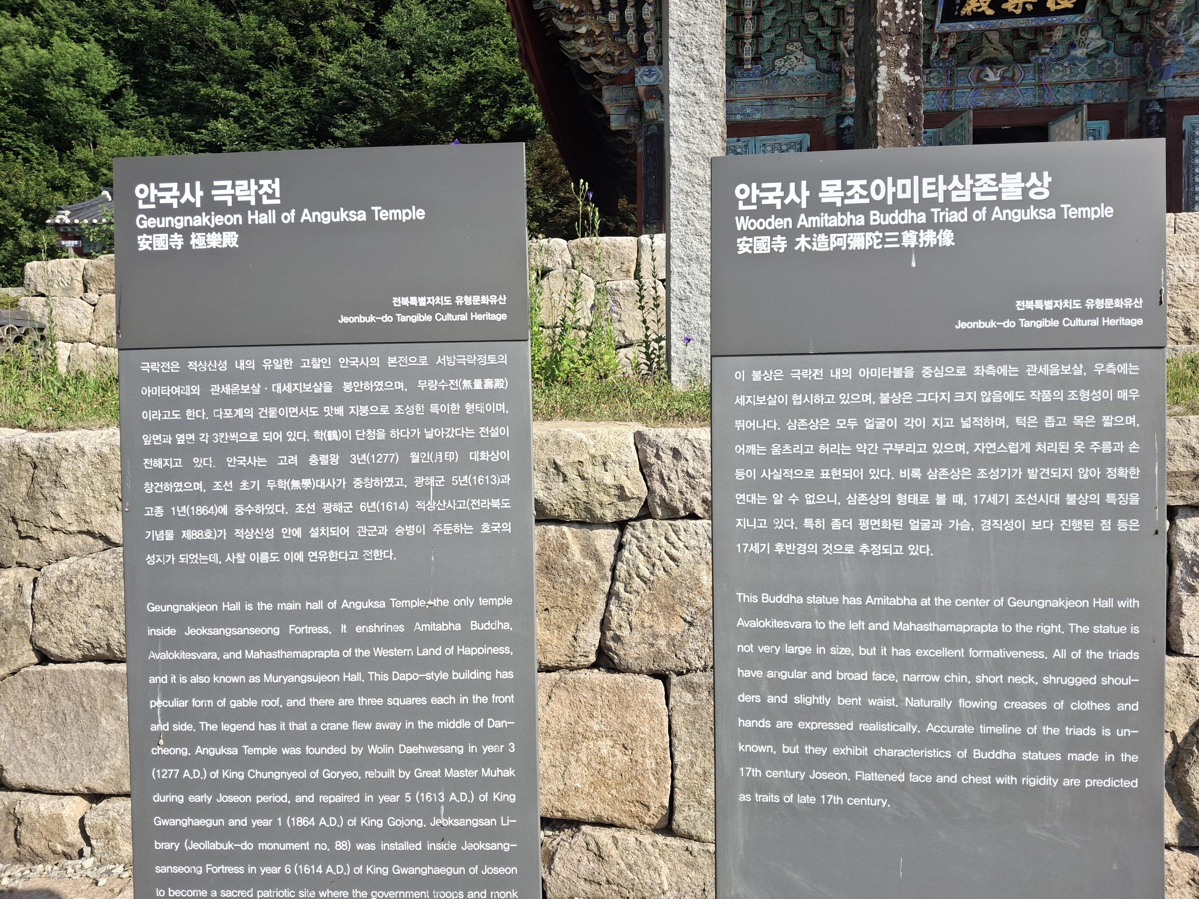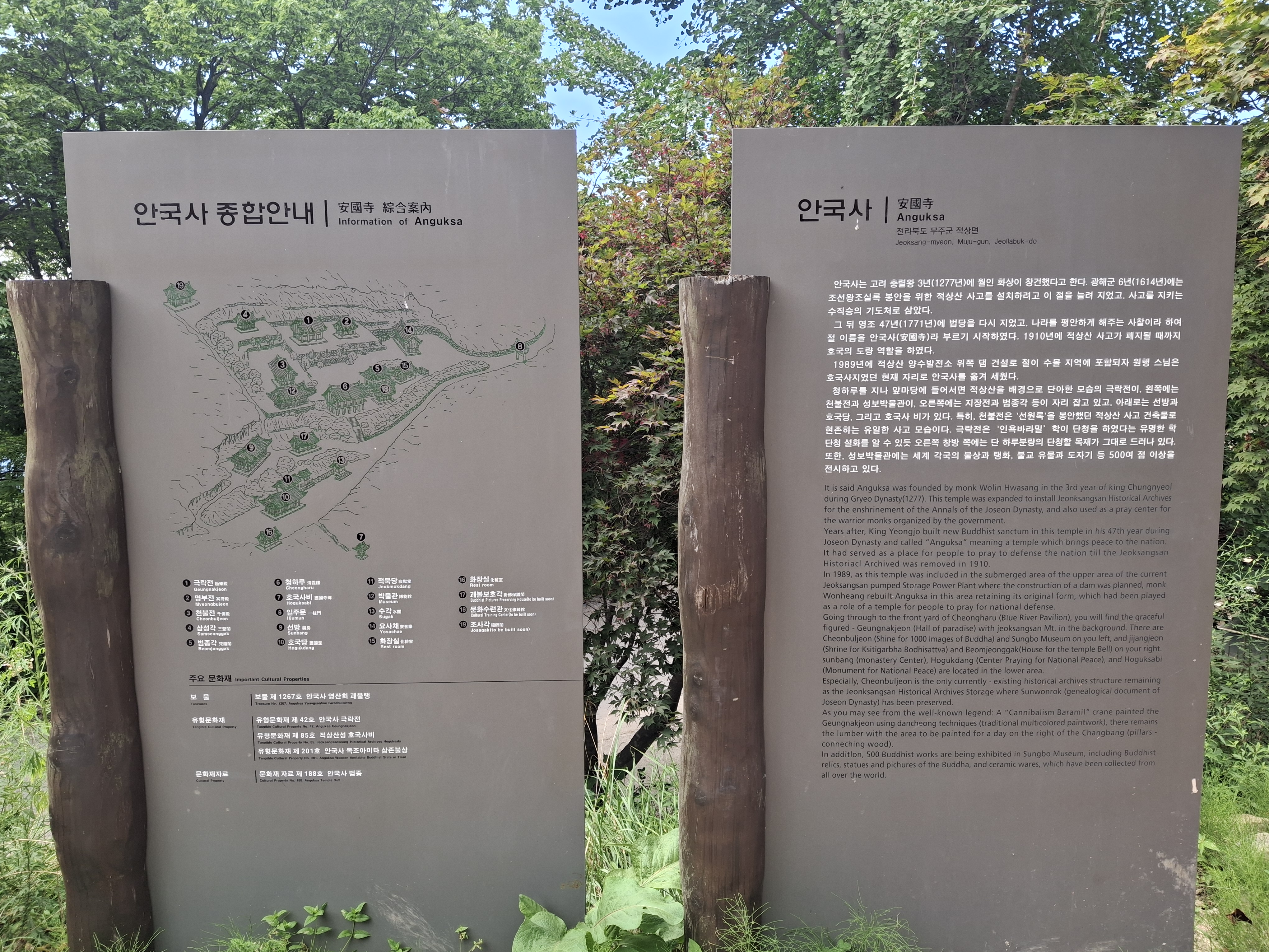 또한, 극락전 및 괘불 등의 국가유산을 가지고 있는 안국사(安國寺)가 높이 1,000m의 적상산성 안에 위치한다.