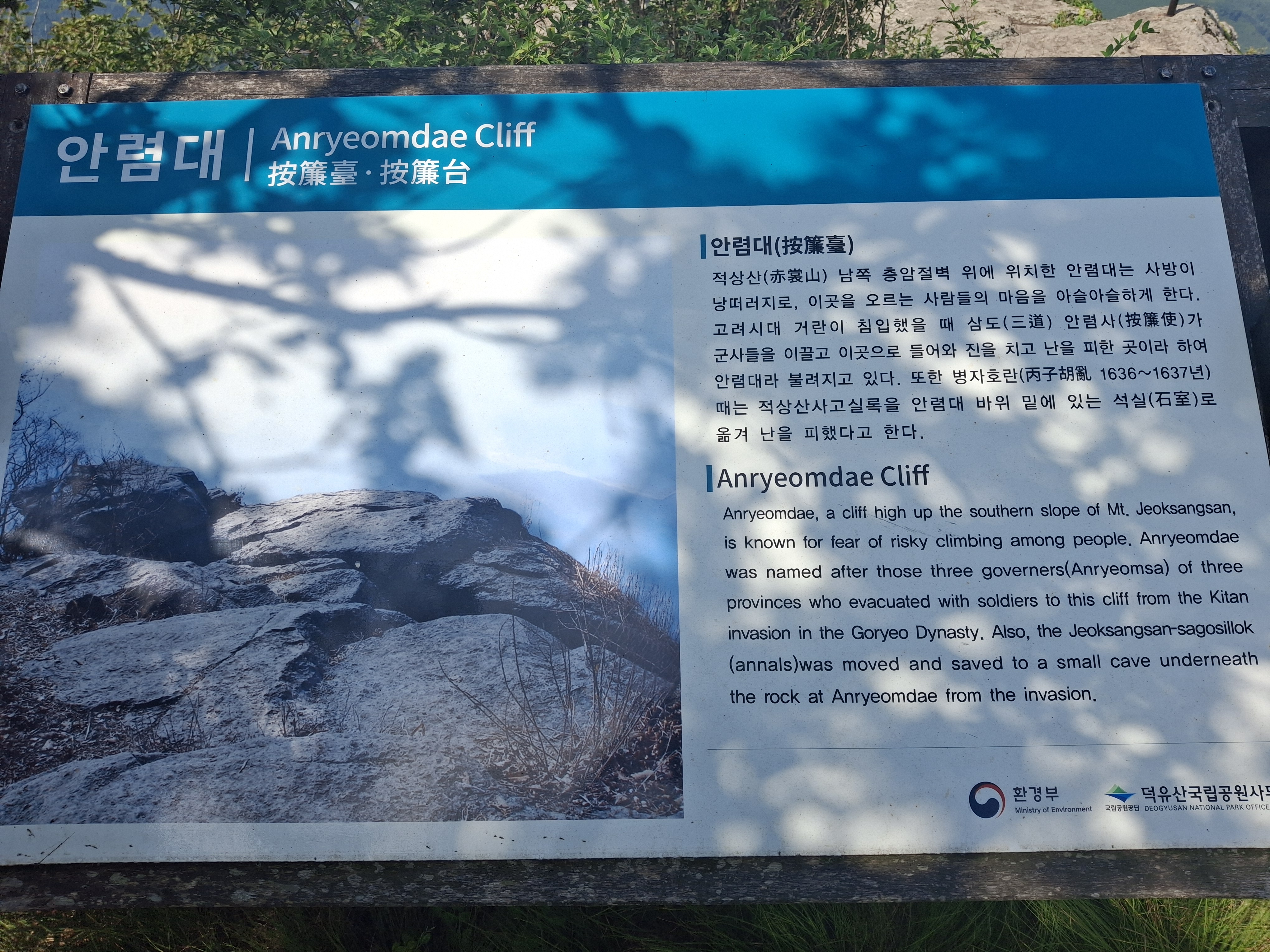 안국사에서 서남쪽 1㎞ 지점에 안렴대(按廉臺)라는 큰 암반이 있다.