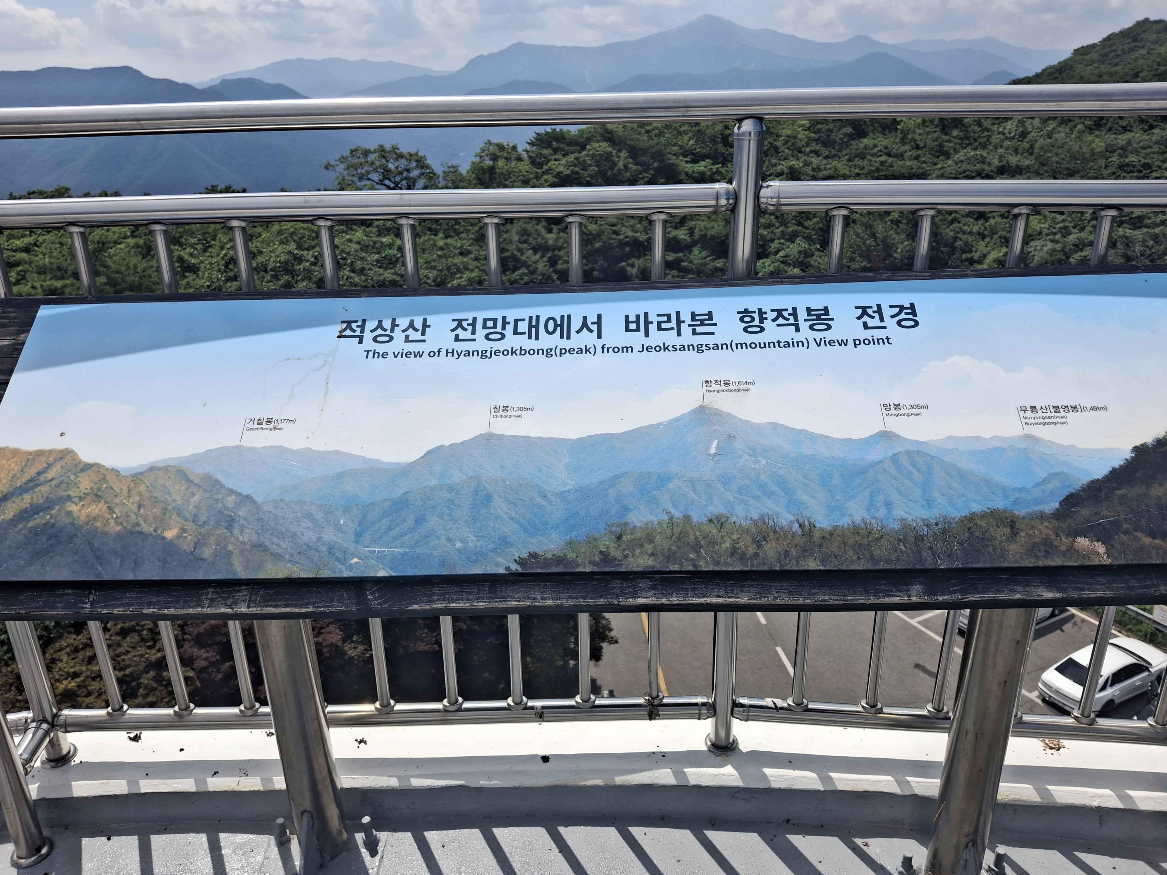 적상산은 최고봉인 기봉(1030.6m)이 향로봉(1,020.4m)을 거느리고