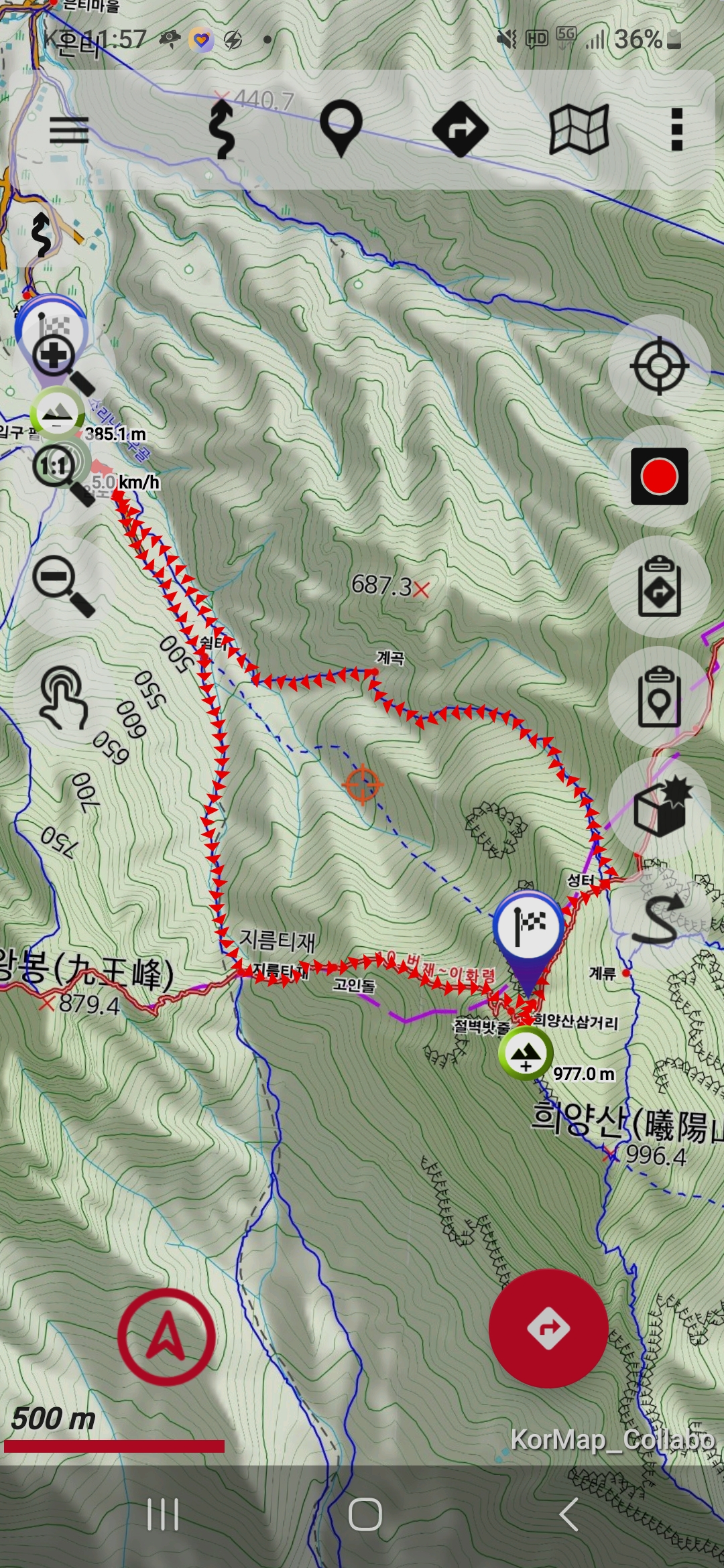 ● 도상 거리 : 오룩스 5.7 km