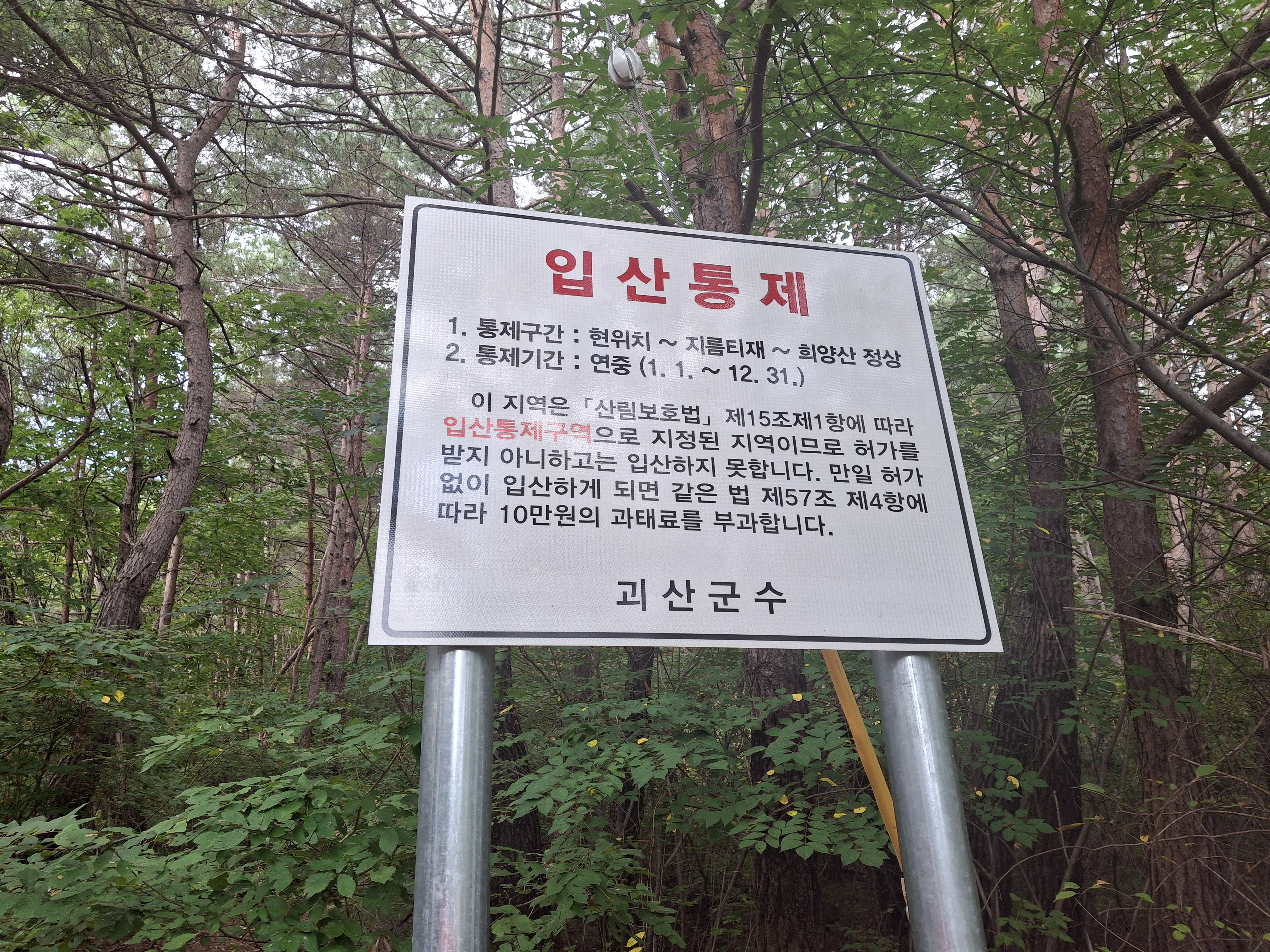 - 괴산/문경 희양산은 산림청 에서 선정한 남한 100대 명산임
