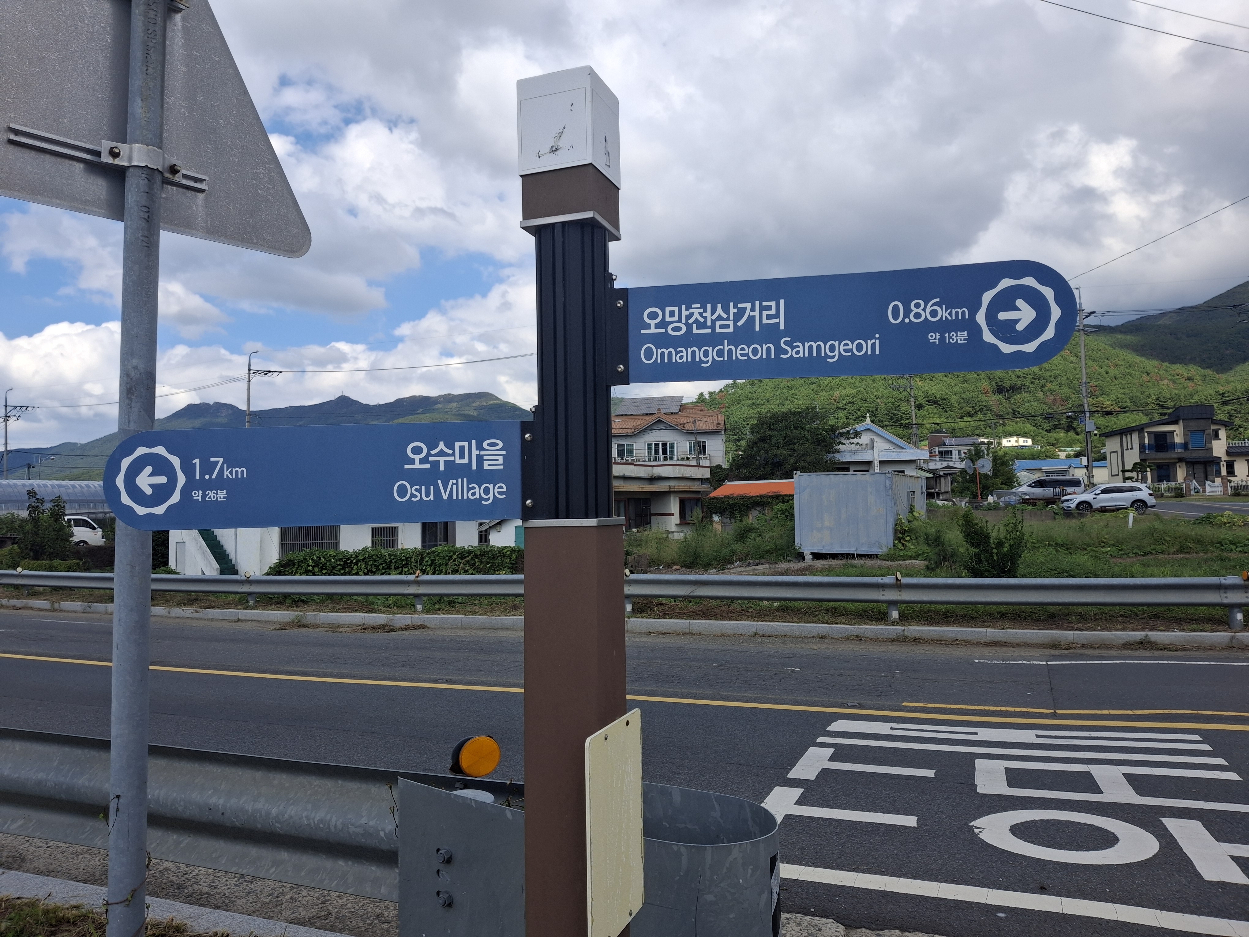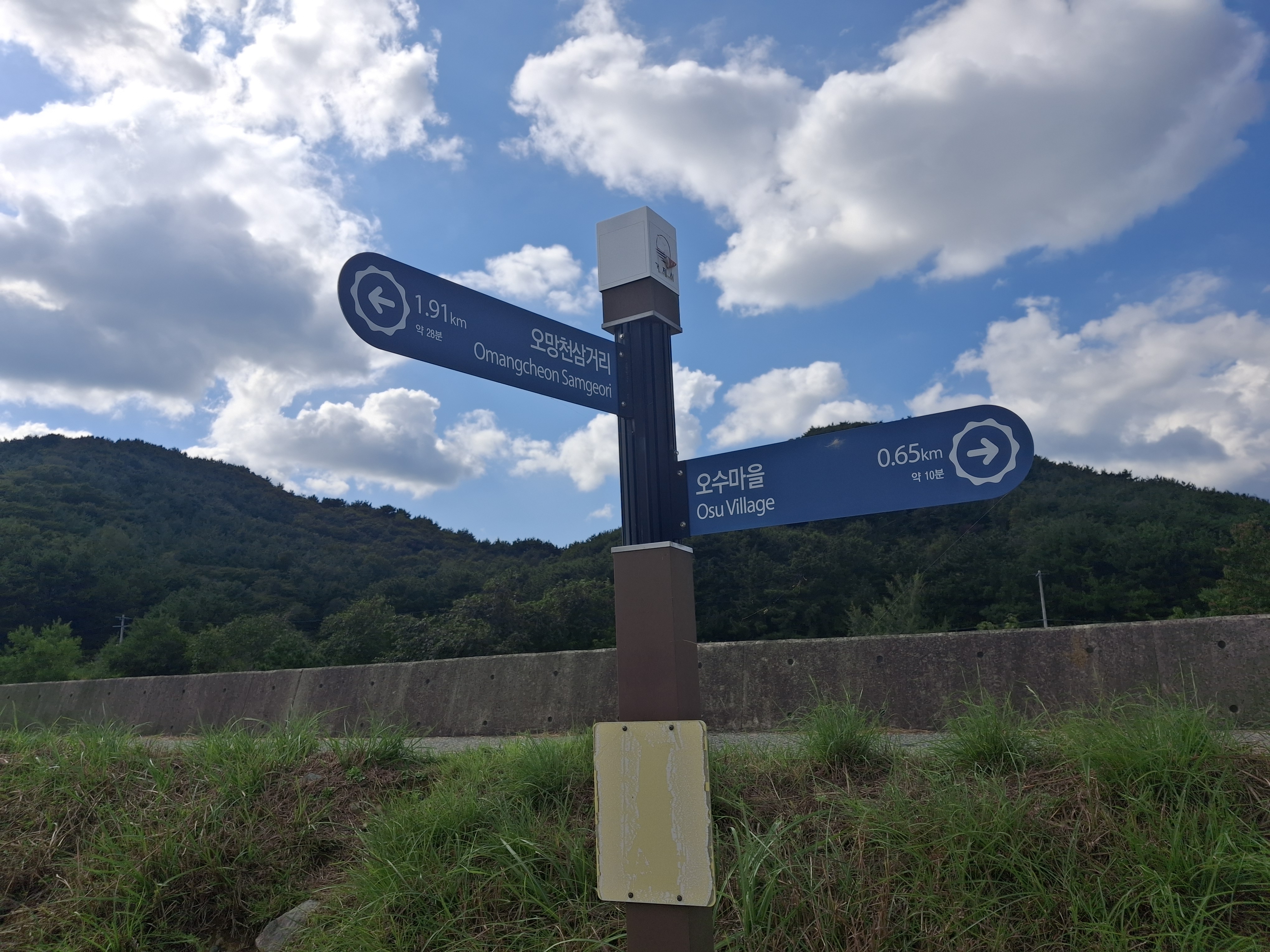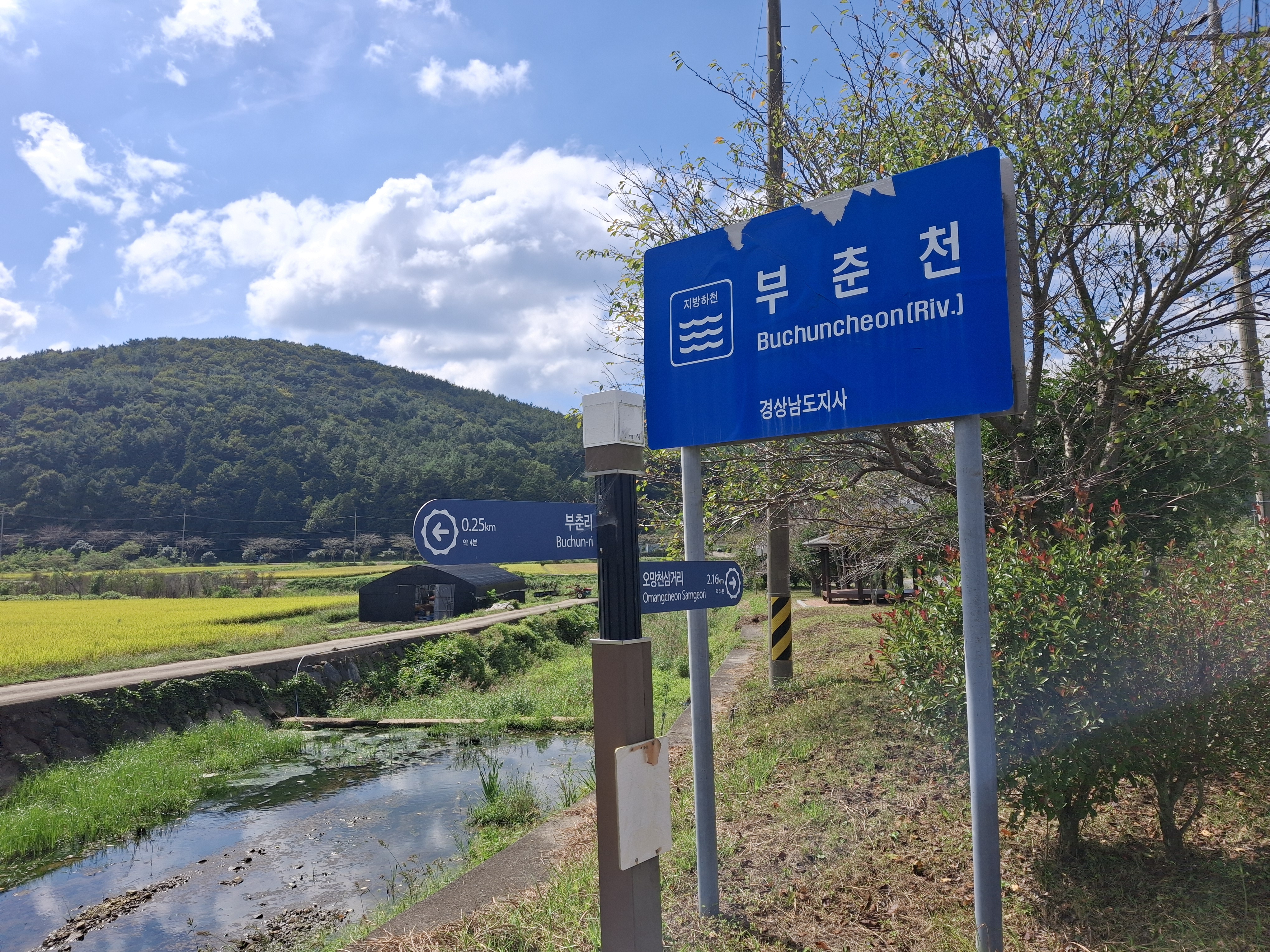 부춘마을 표지석 → 부춘 장로교회 → 삼거림마을 표지석 → 오망천 삼거리(10.3 k) →