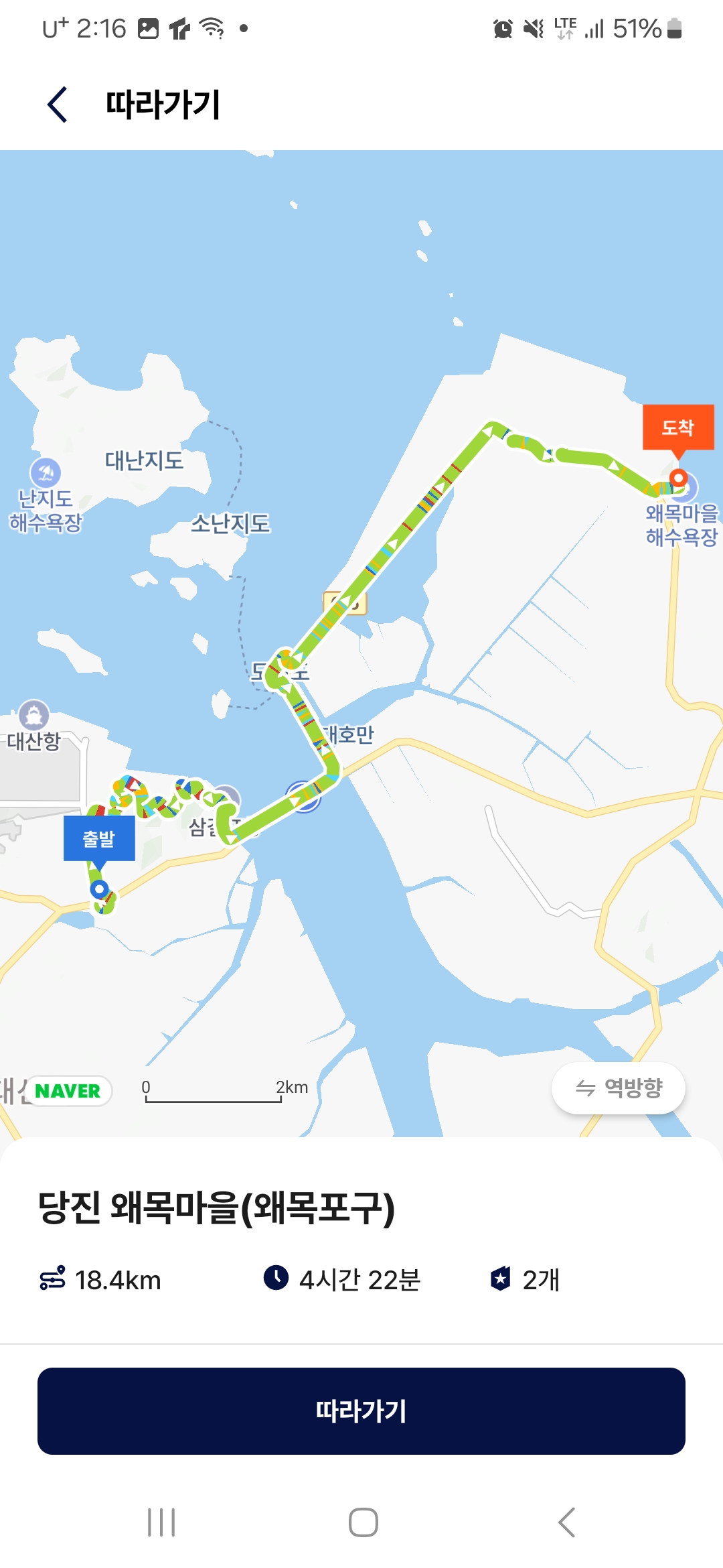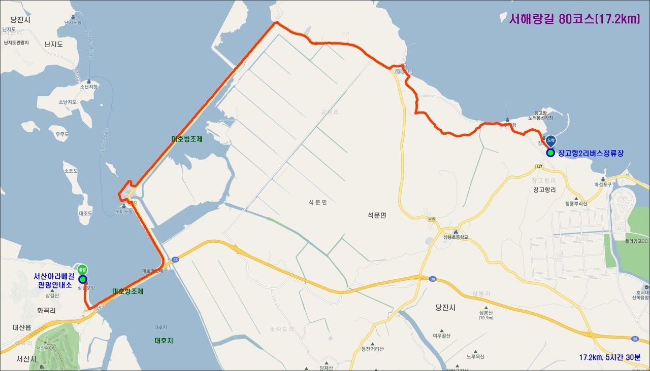 - 종점 : 당진시 석문면 장고항리 577 해양경찰서 당진파출소