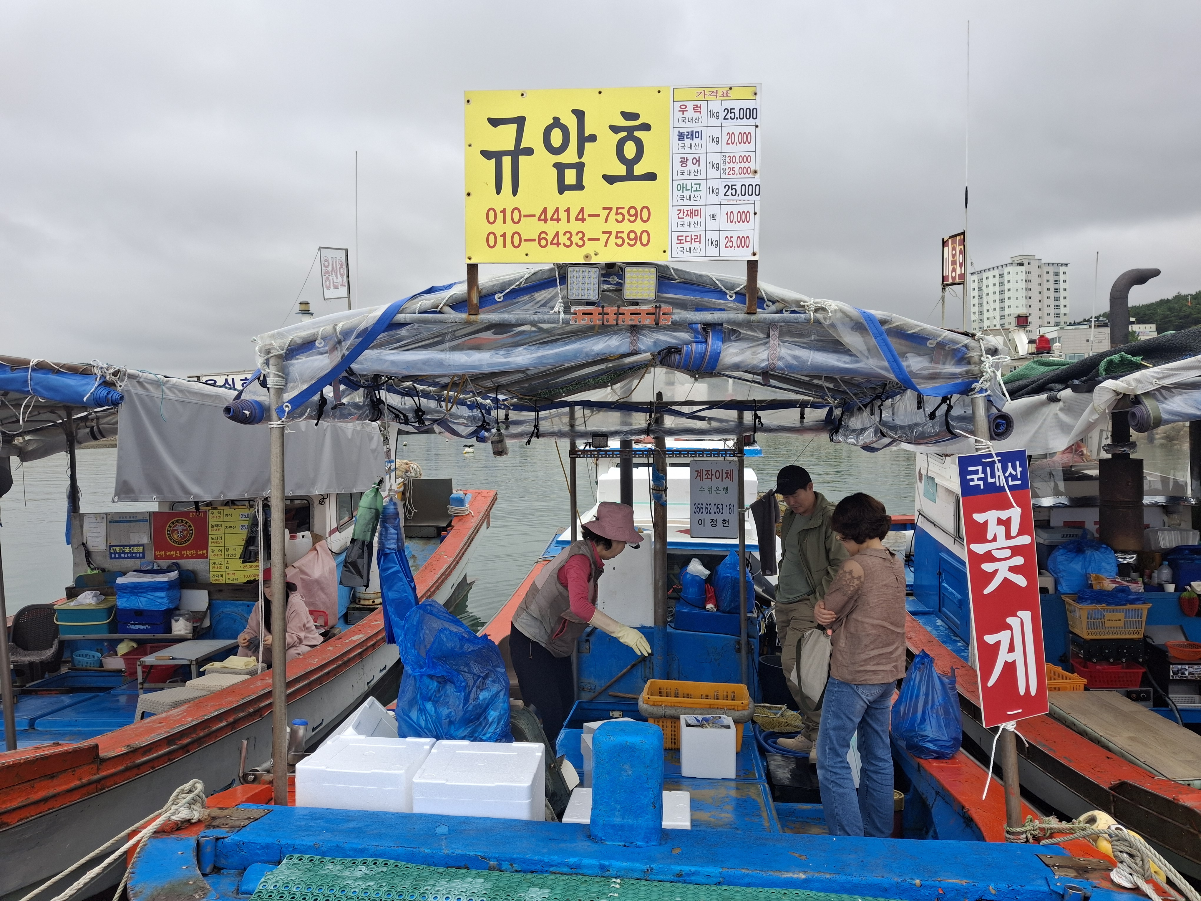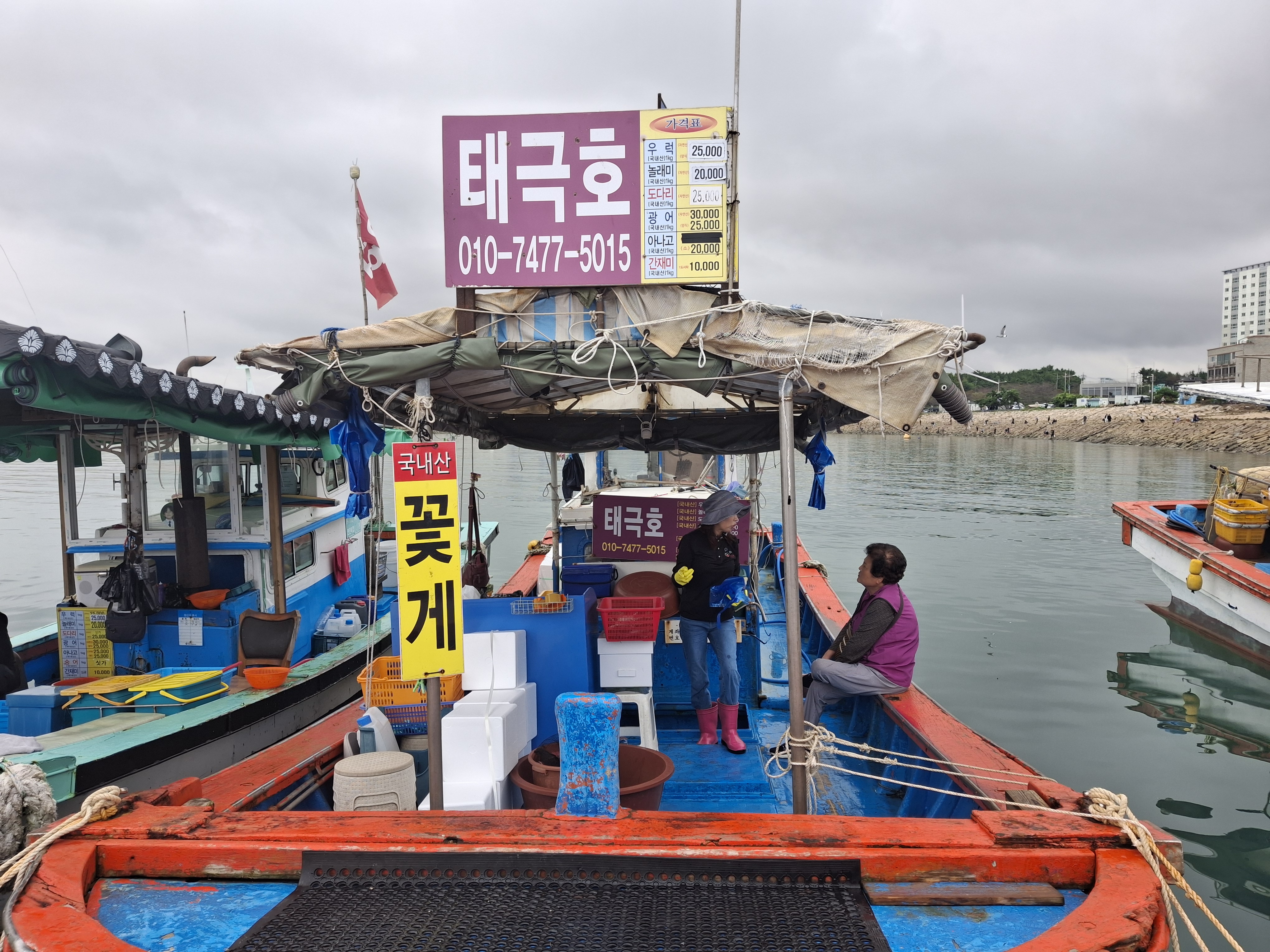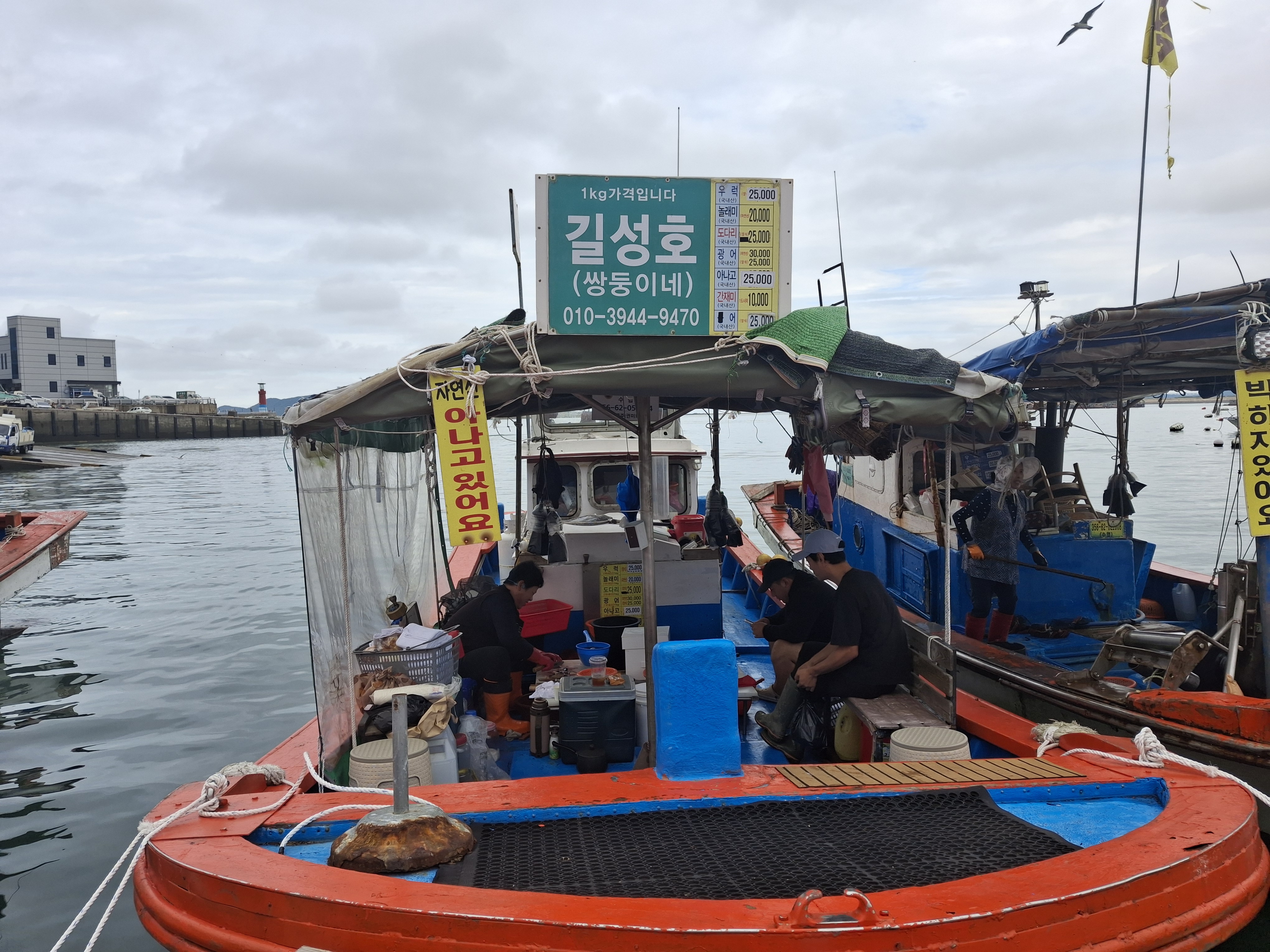 - 정박 중인 배 위에서 어부들이 갓 잡은 생선으로 뜬 회를 먹을 수 있는 '삼길포선상어시장'