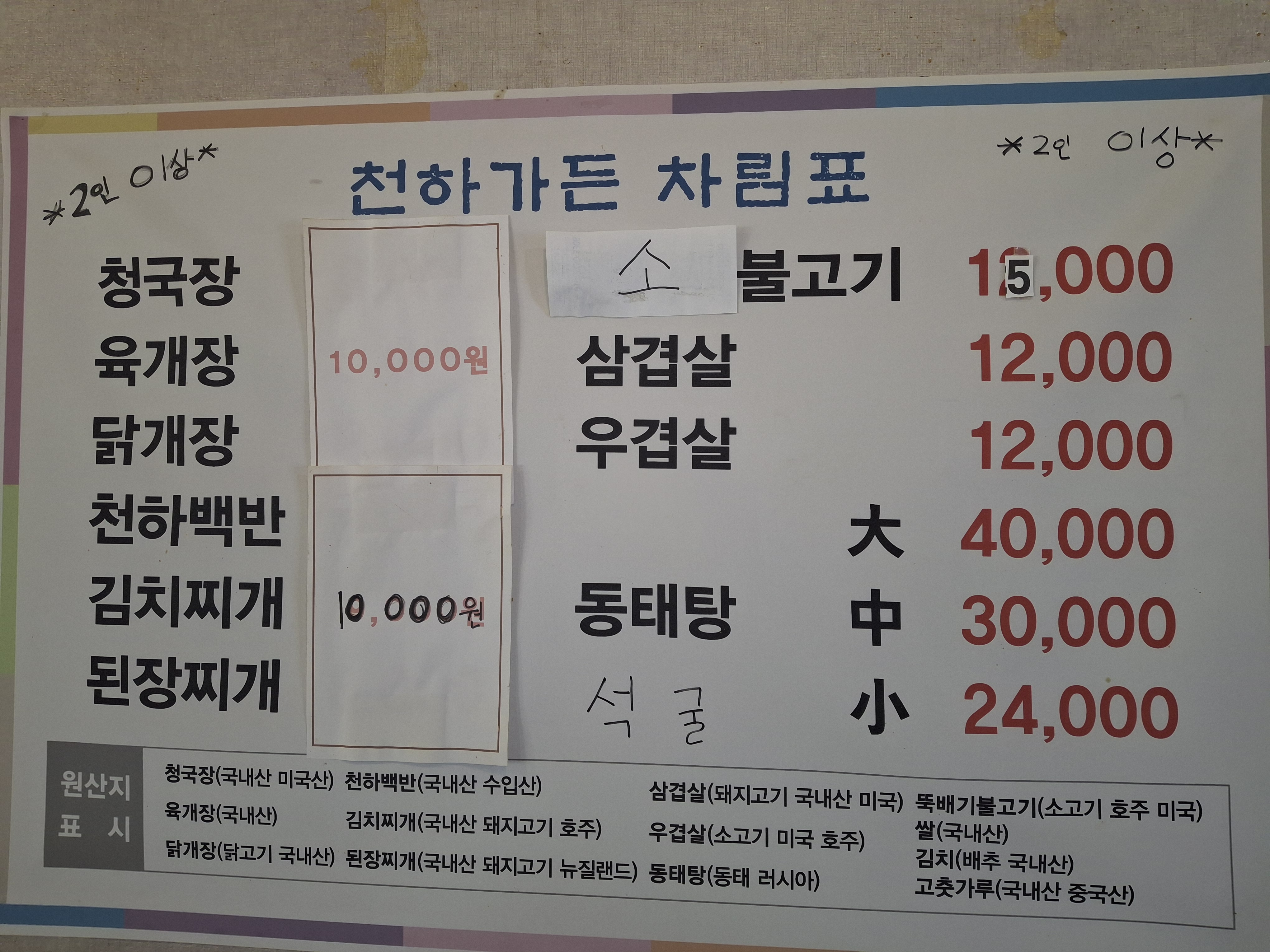 동태탕 (대)40,000원(☆) 김치찌게/청국장 10,000원