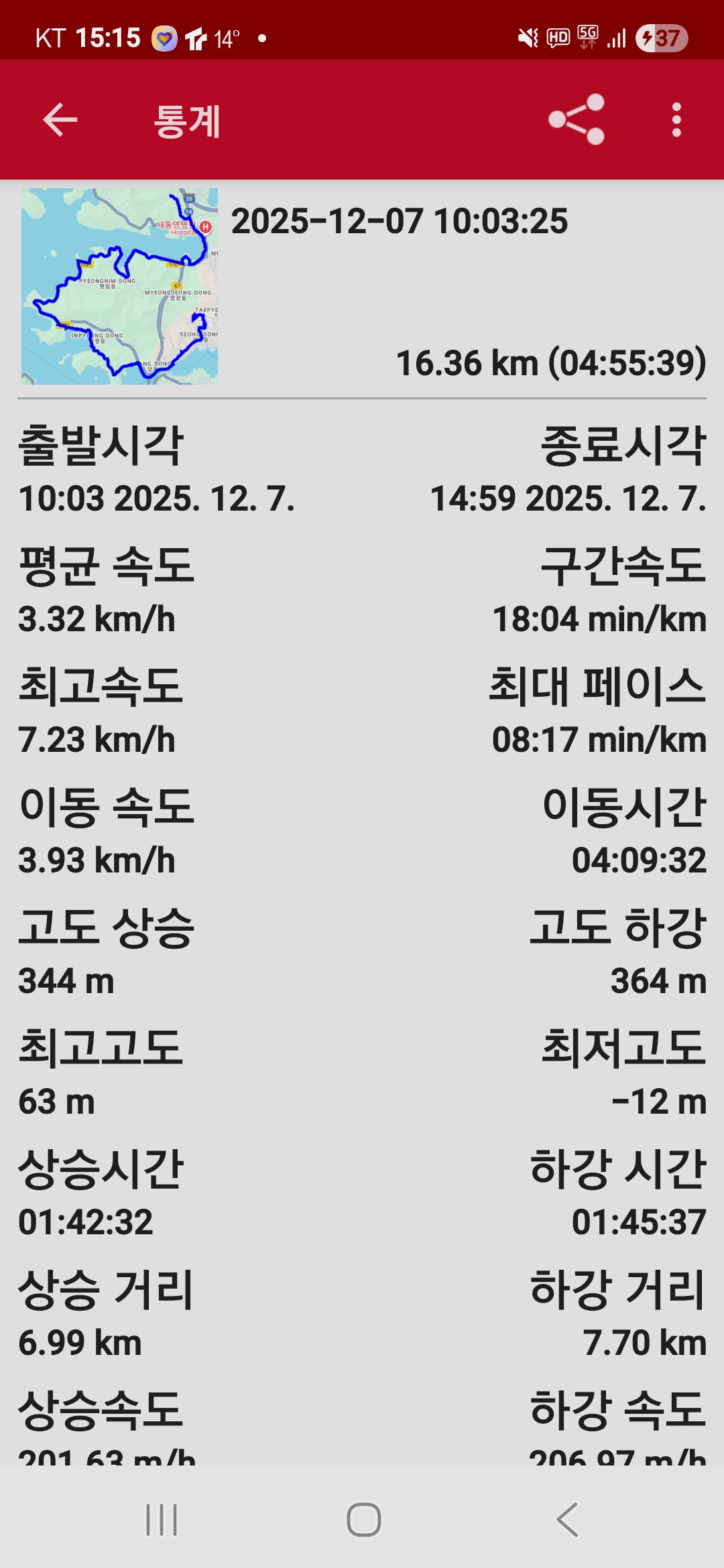 ● 트레킹 일시 : 2025. 12. 07.(일) 10:03 ~ 14:59