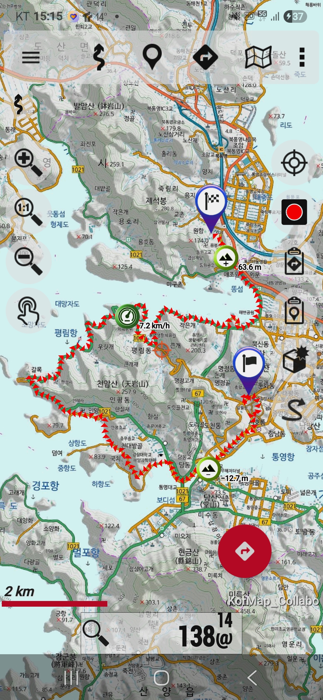 ● 도상 거리 : 트랭글 17.3 km / 오룩스 16.36 km