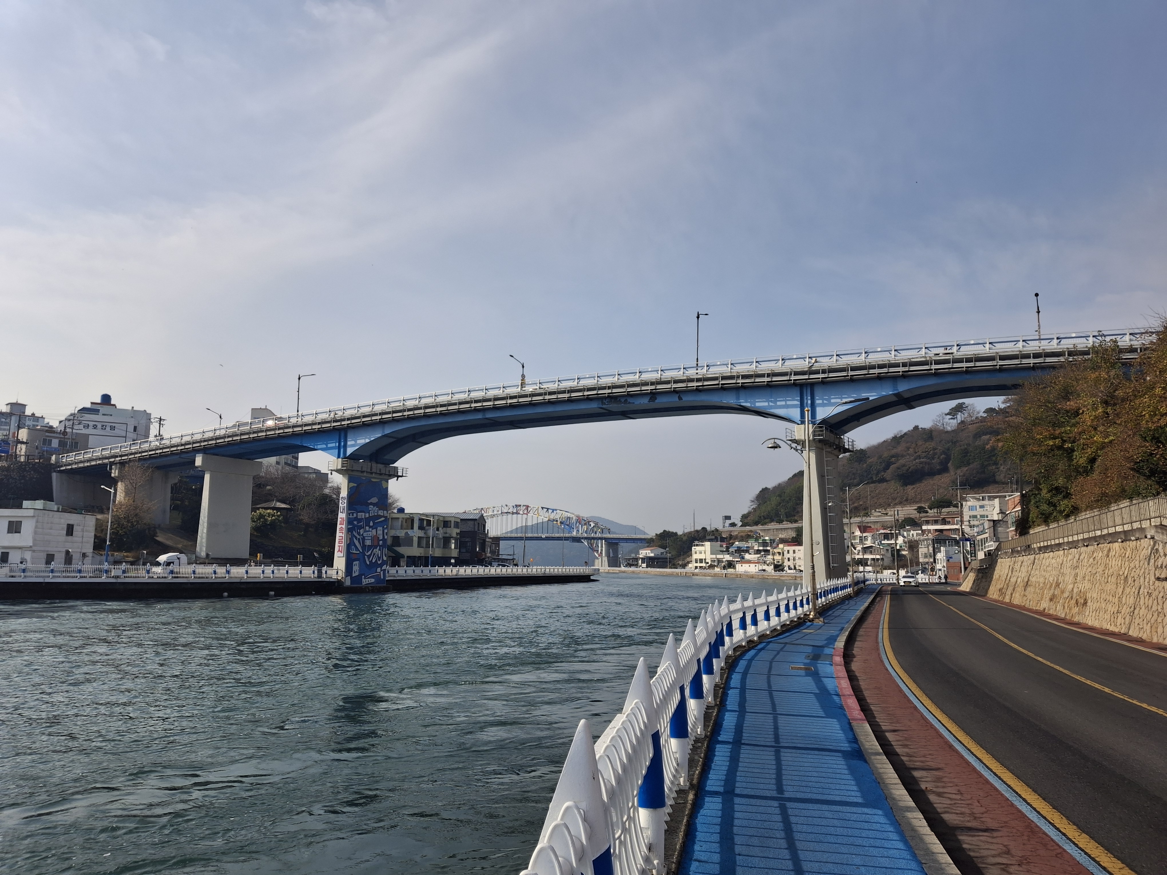 윤이상 기념관 → 해저터널 → 충무교 → 통영대교 (3.2 k) → 경상대 해양과학대학 → 국치마을 →