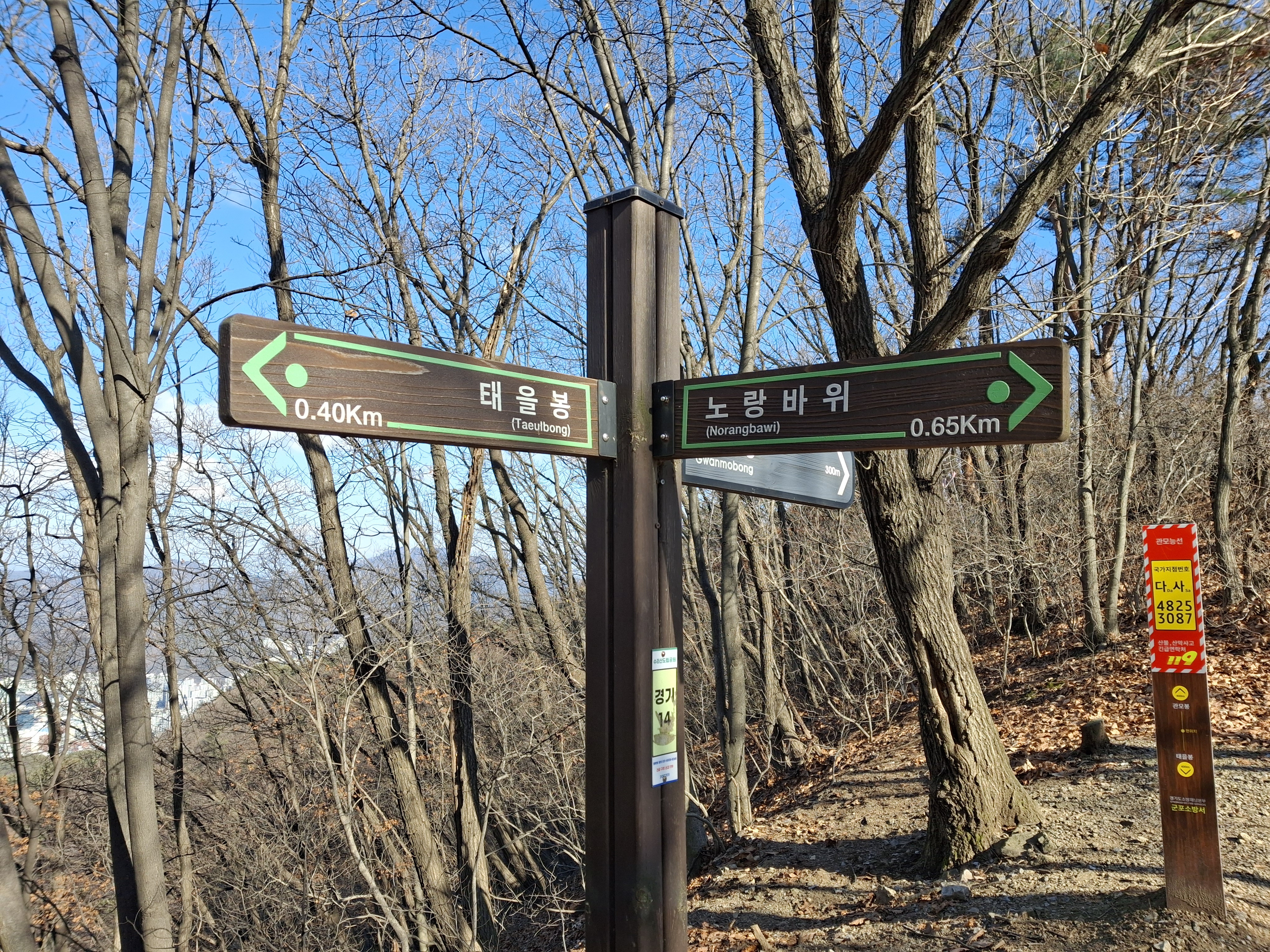 수리산 태을봉(×489m) → 노랑바위 갈림길 → 만남의광장 갈림길 → 관모봉(×425.2m) →
