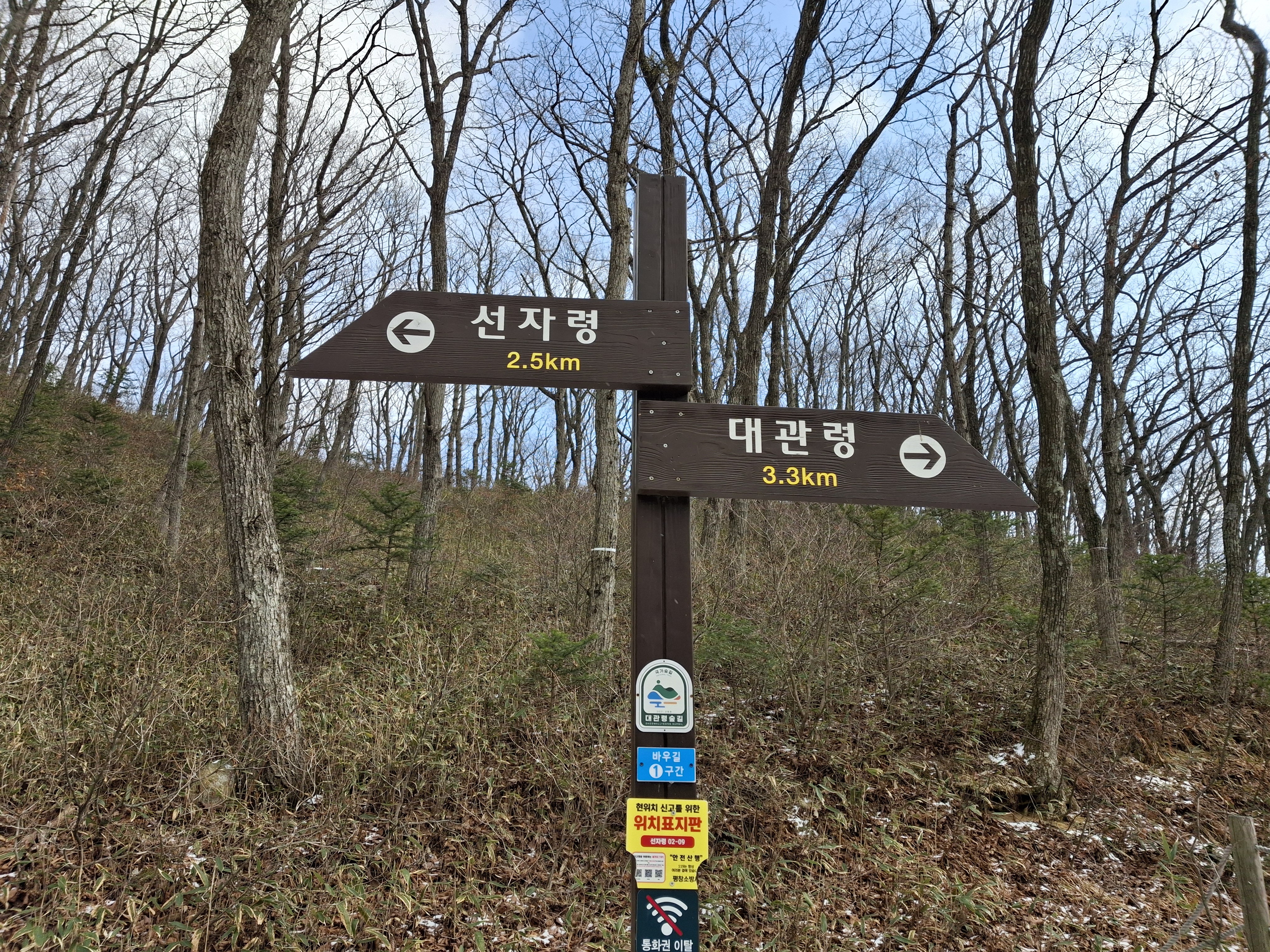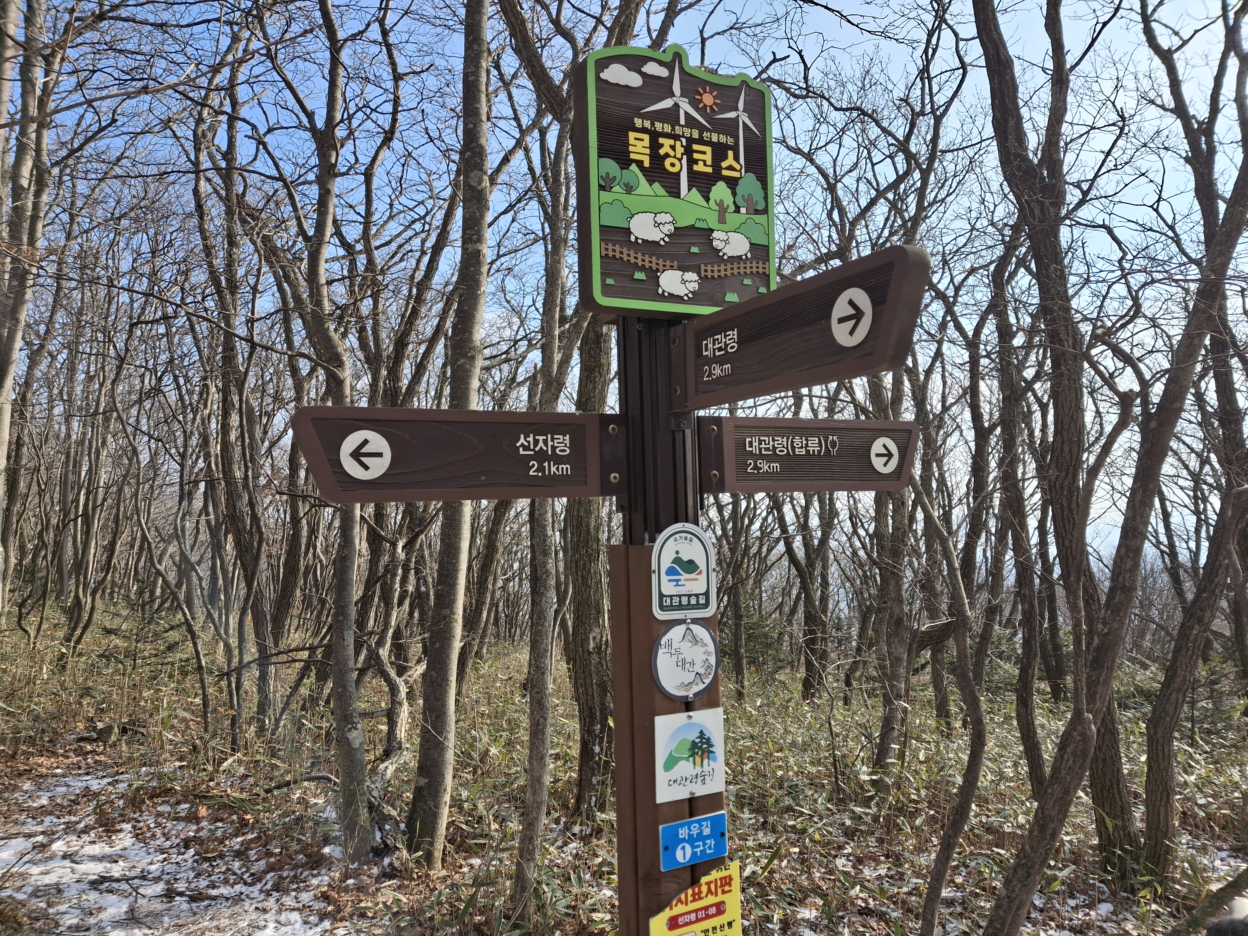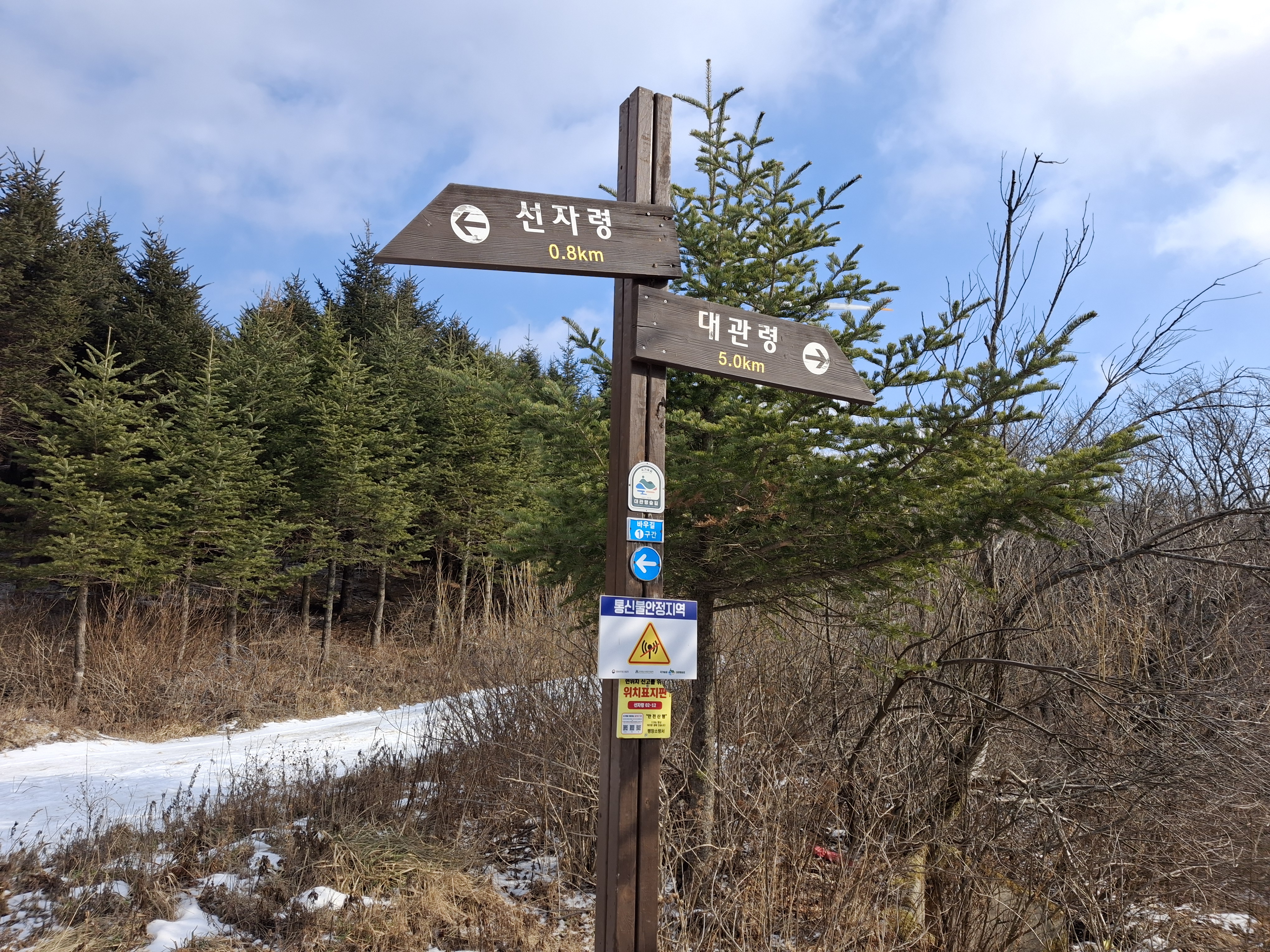 새봉(×1059.5m) → 선자령(×1155.7m) → 백두대간 갈림길 → 강릉바우길 1코스 → 재궁골 삼거리 →