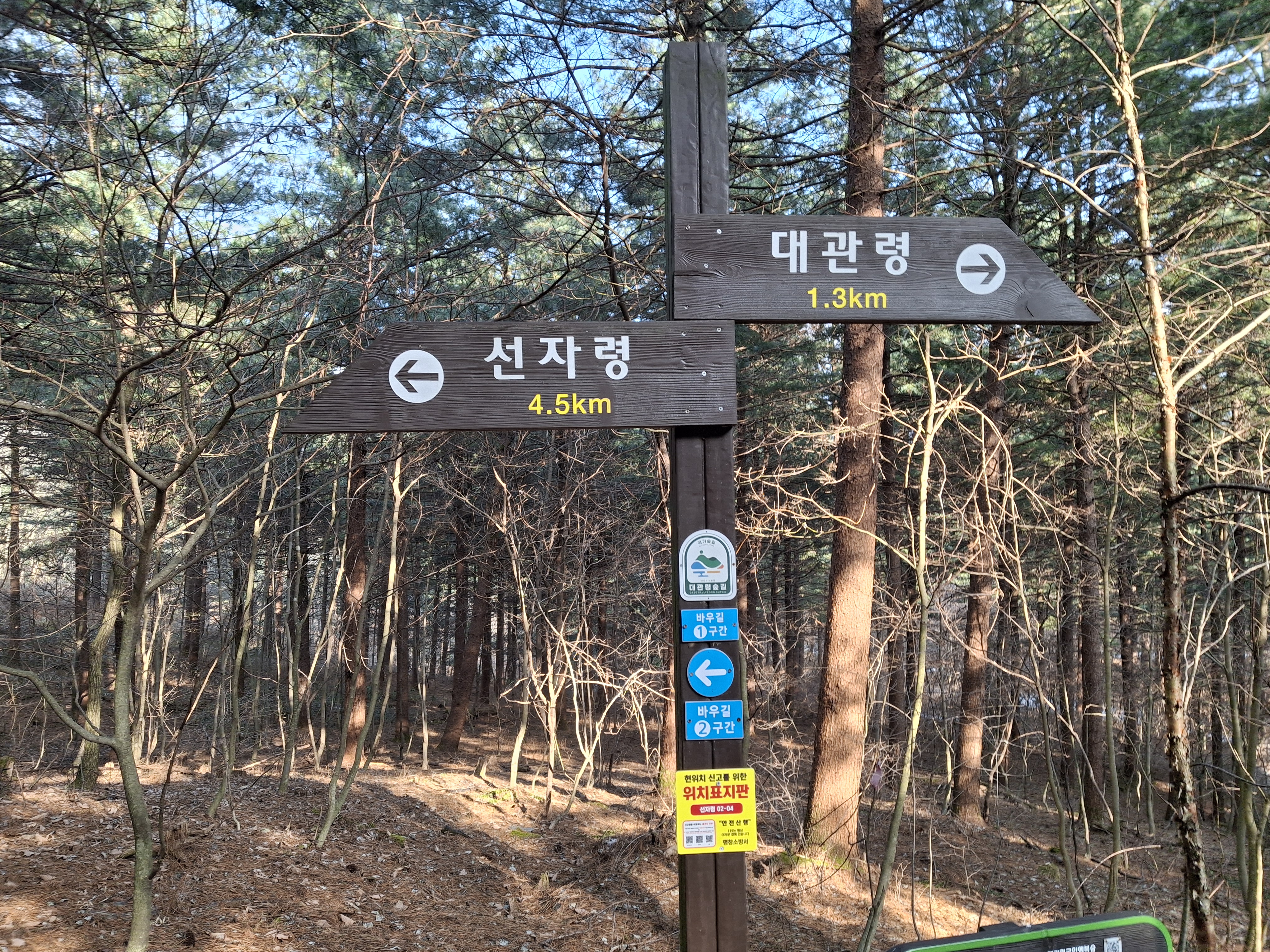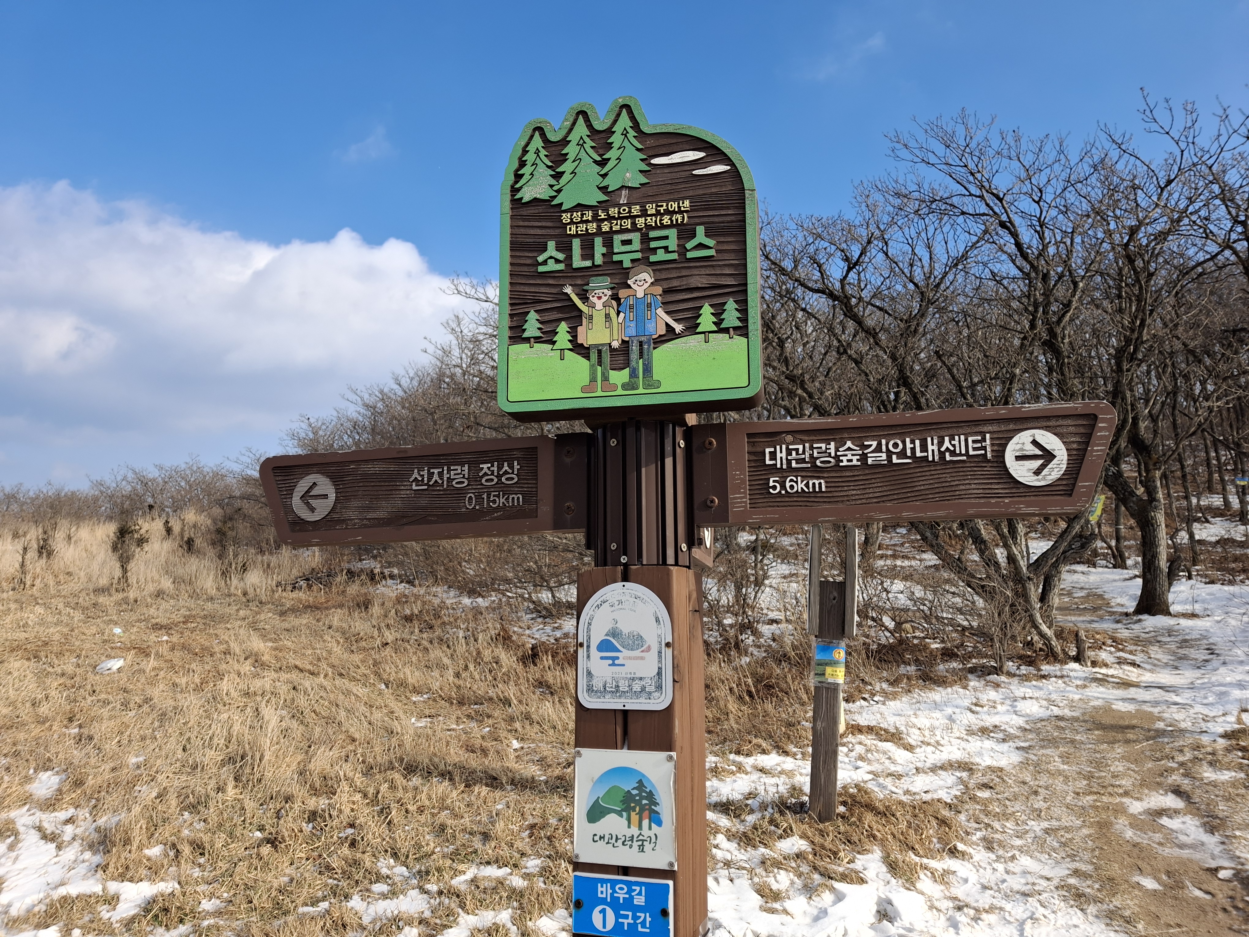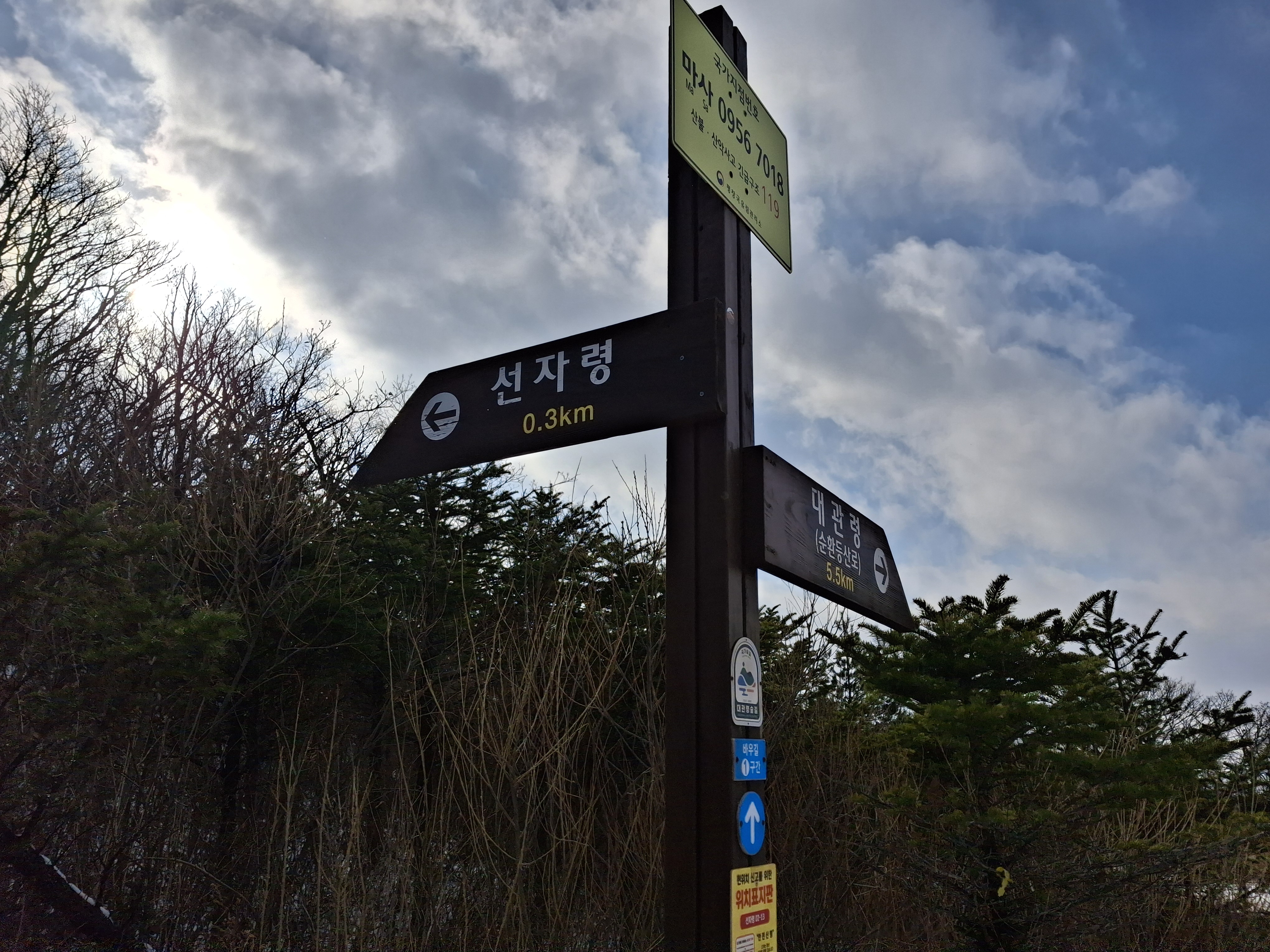새봉(×1059.5m) → 선자령(×1155.7m) → 백두대간 갈림길 → 강릉바우길 1코스 → 재궁골 삼거리 →