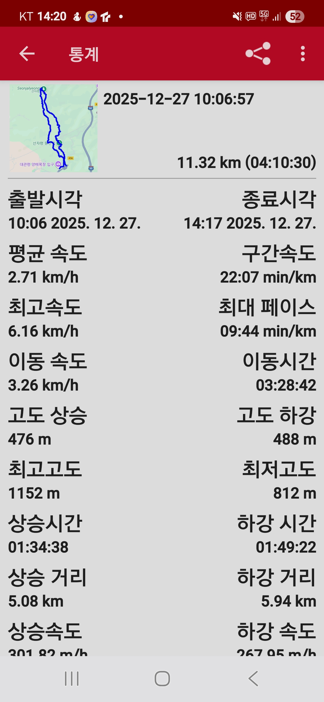 ● 트레킹 일시 : 2025. 12. 27.(토) 10:06 ~ 14:17