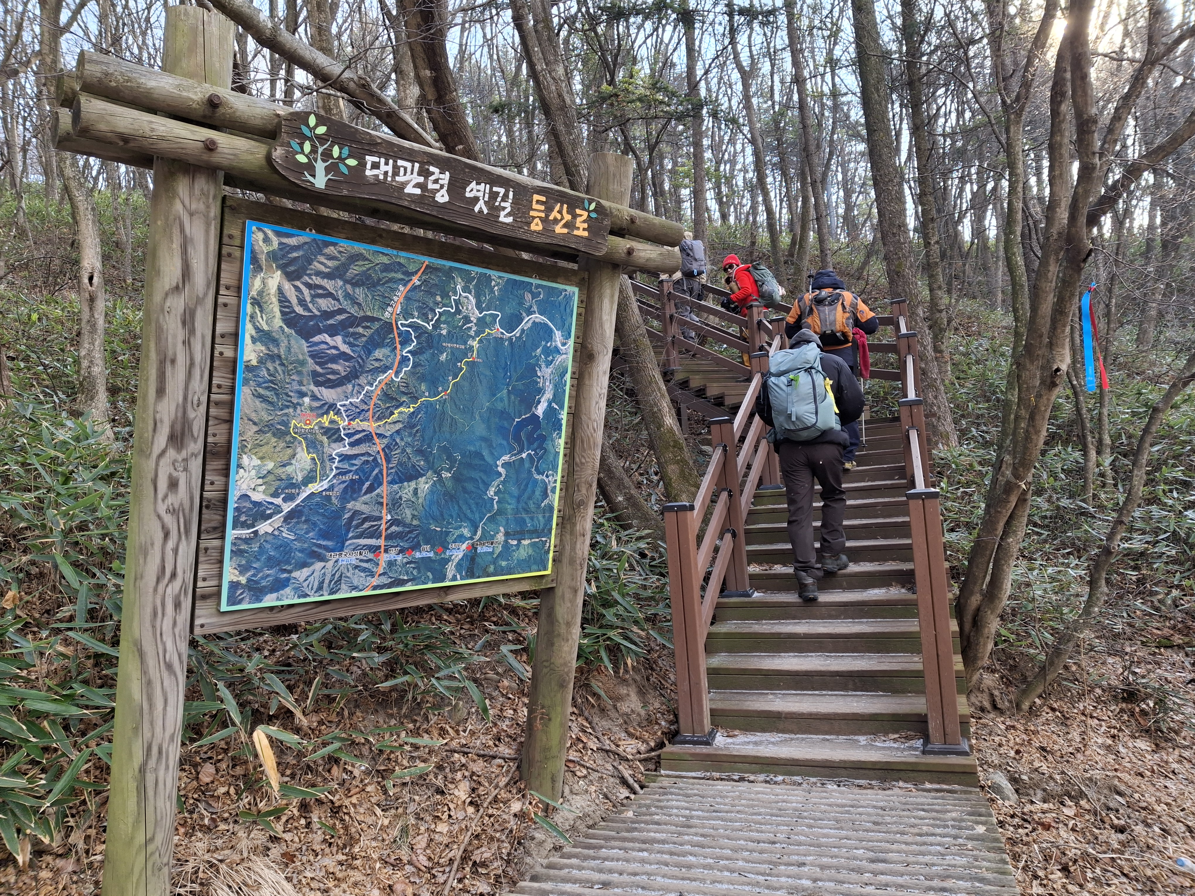 ● 산행 코스 : 대관령 마을휴게소 → 백두대간 접속 → 국사성황사 입구 → 무선표지소 → 새봉 전망대(×1050.4m) →