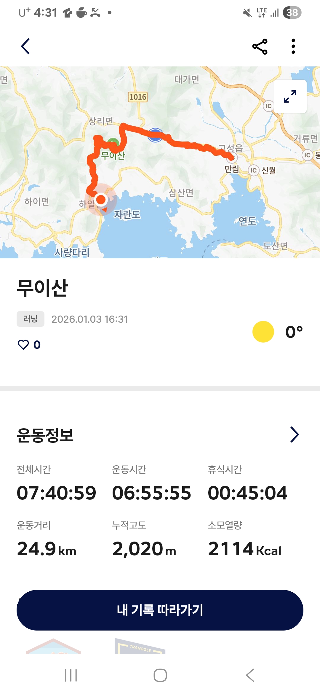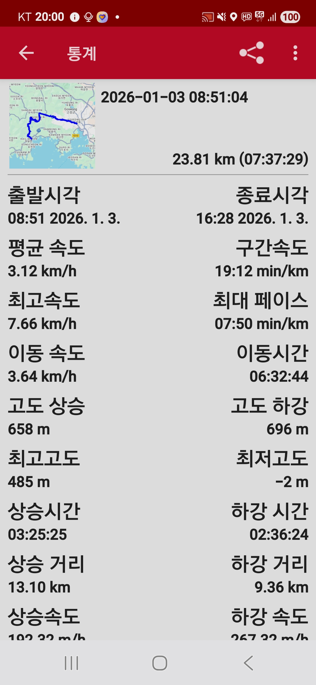 ● 트레킹 일시 : 2026. 01. 03.(토) 08:51 ~ 16:28