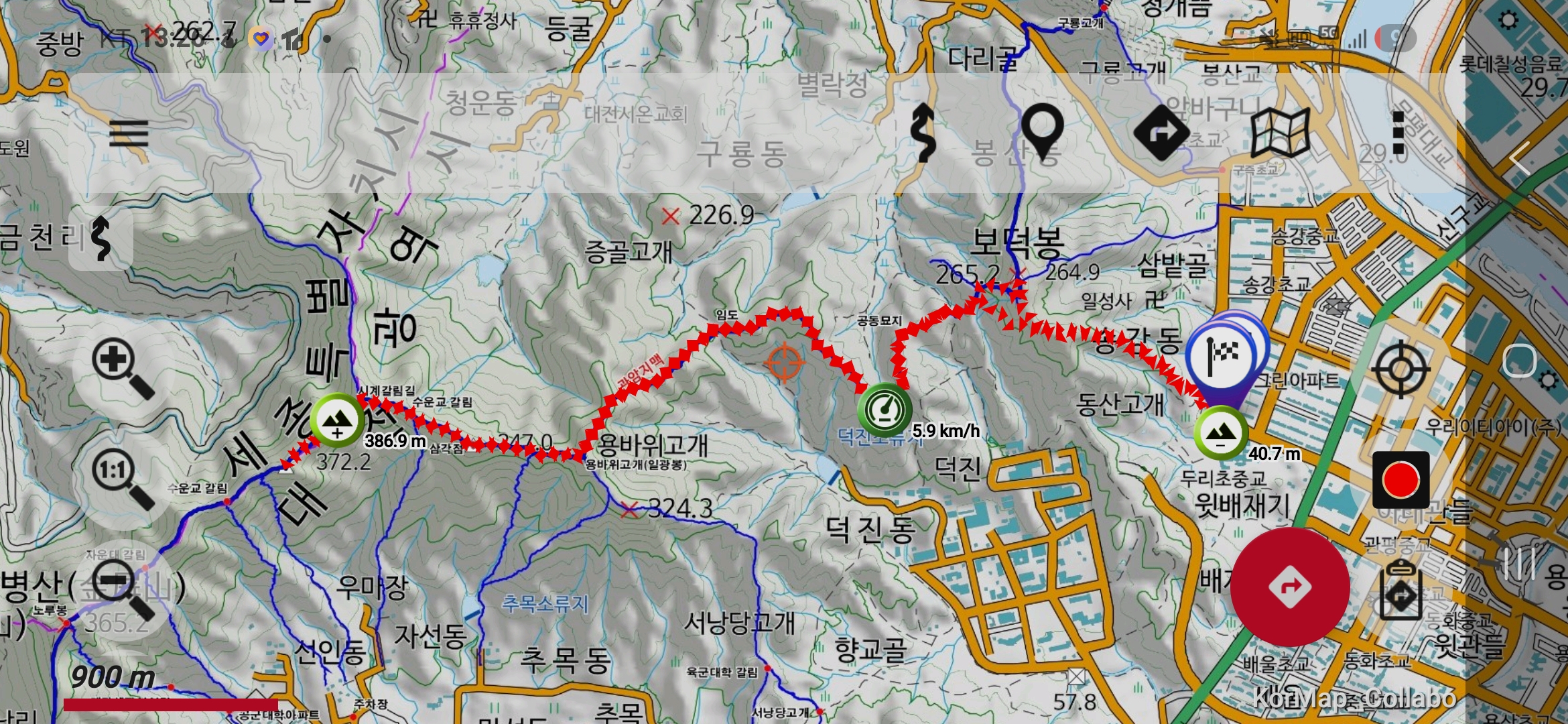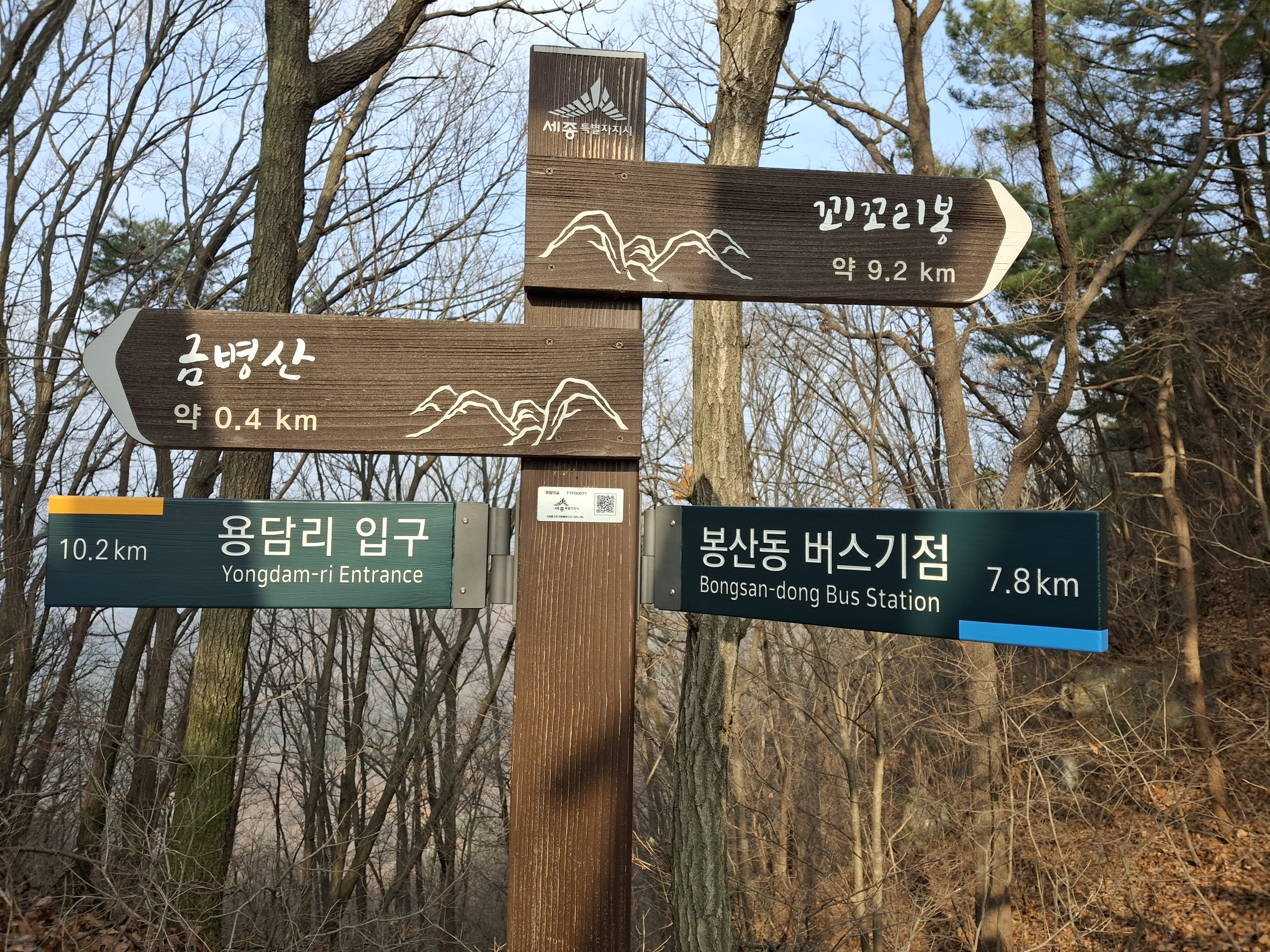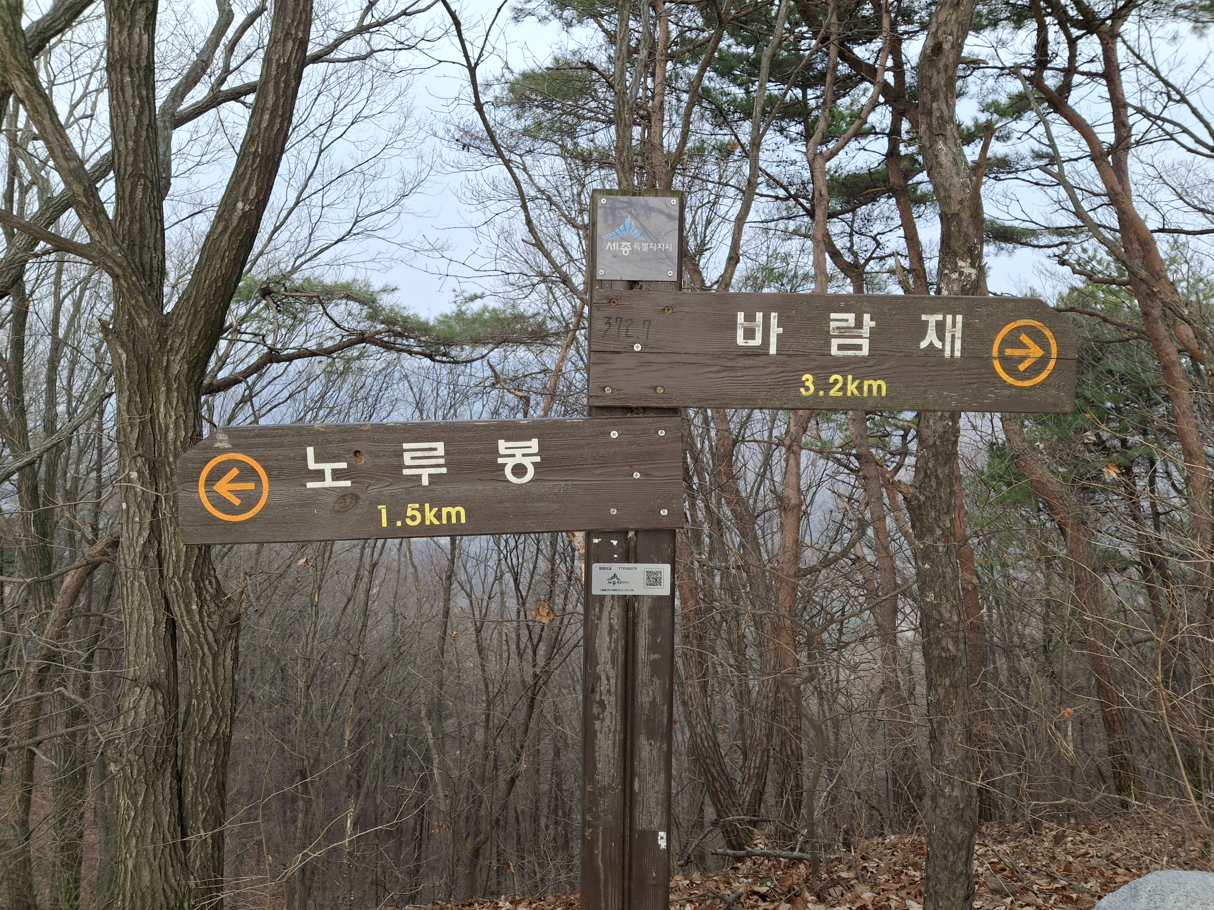 대전/세종시경계 갈림길 → 제6연화봉 → 제7운수봉(△372.2m) 왕복