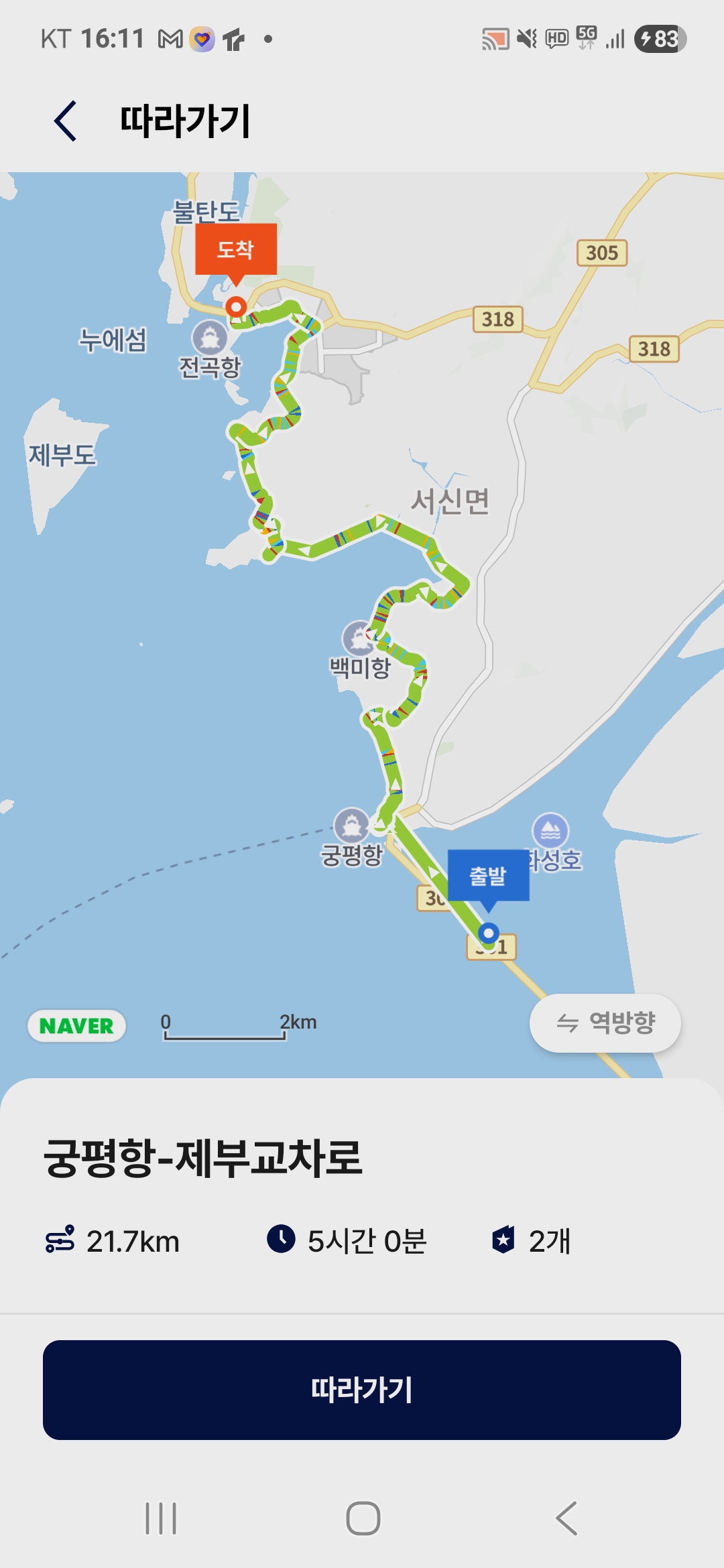 - 종점 : 화성시 서신면 전곡리 1066 전곡항교차로