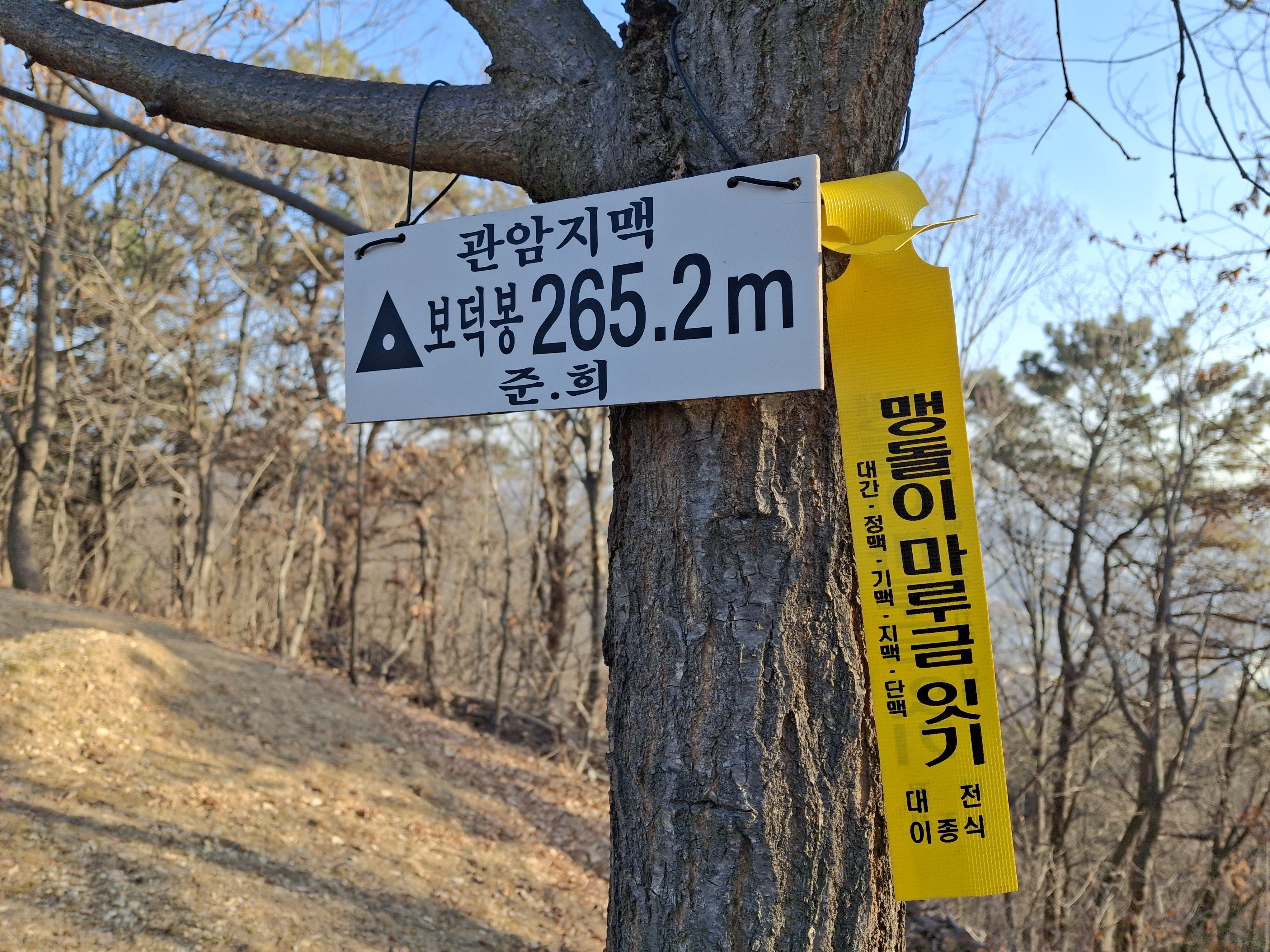 2월의 첫째 토욜(2/7) 오전 8시 34분 대전 유성구 송강동 두리초교를 출발해서 보덕봉(△265m) 으로