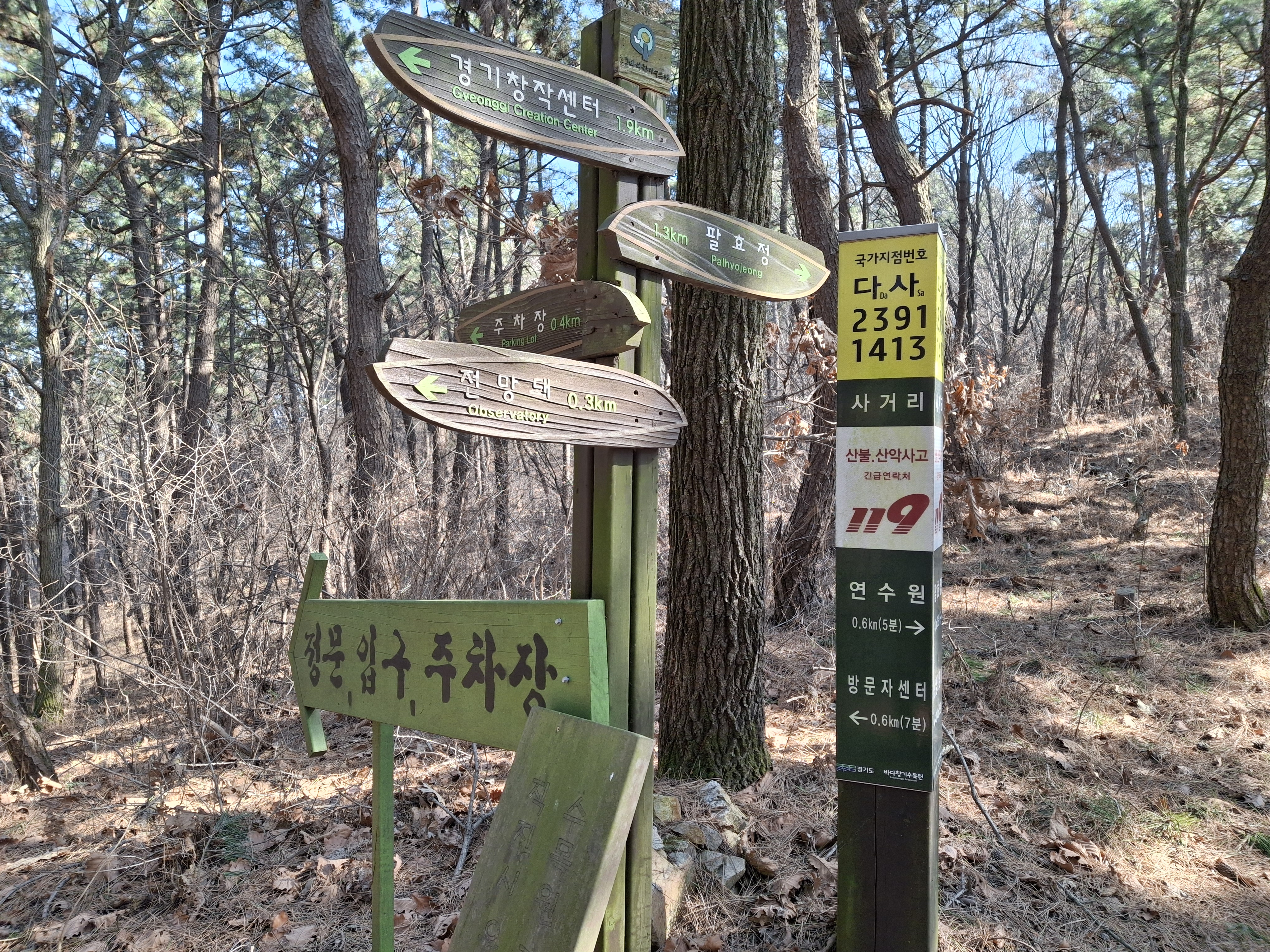 눈물고개 → 바다향기수목원 상상전망대 (×103.4m) (13.1 k) → 대흥산(×123.3m) → 팔효정 →