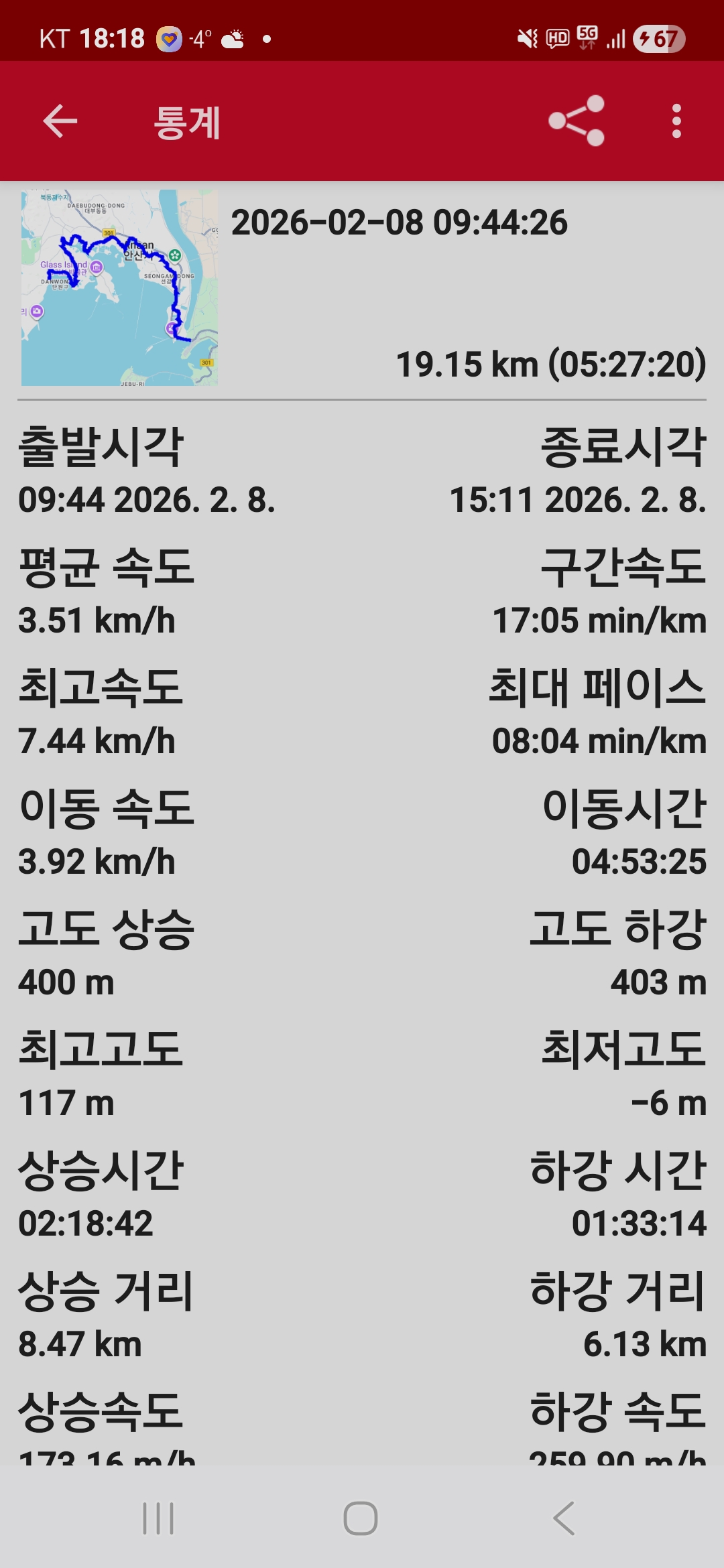 ● 트레킹 일시 : 2026. 02. 08.(일) 09:44 ~ 15:11