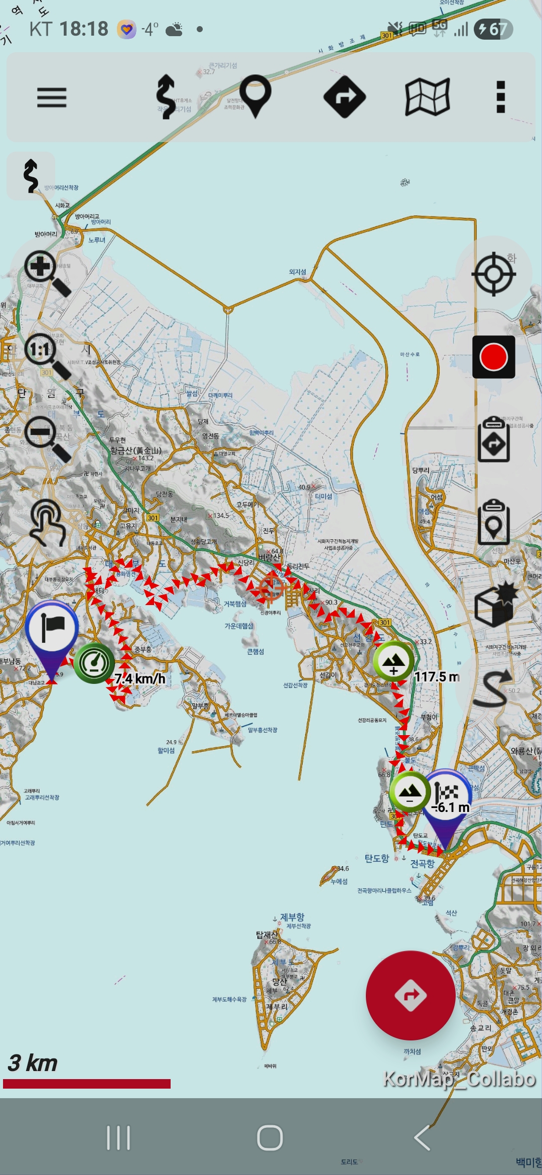 ● 도상 거리 : 트랭글 19.7 km / 오룩스 19.15 km