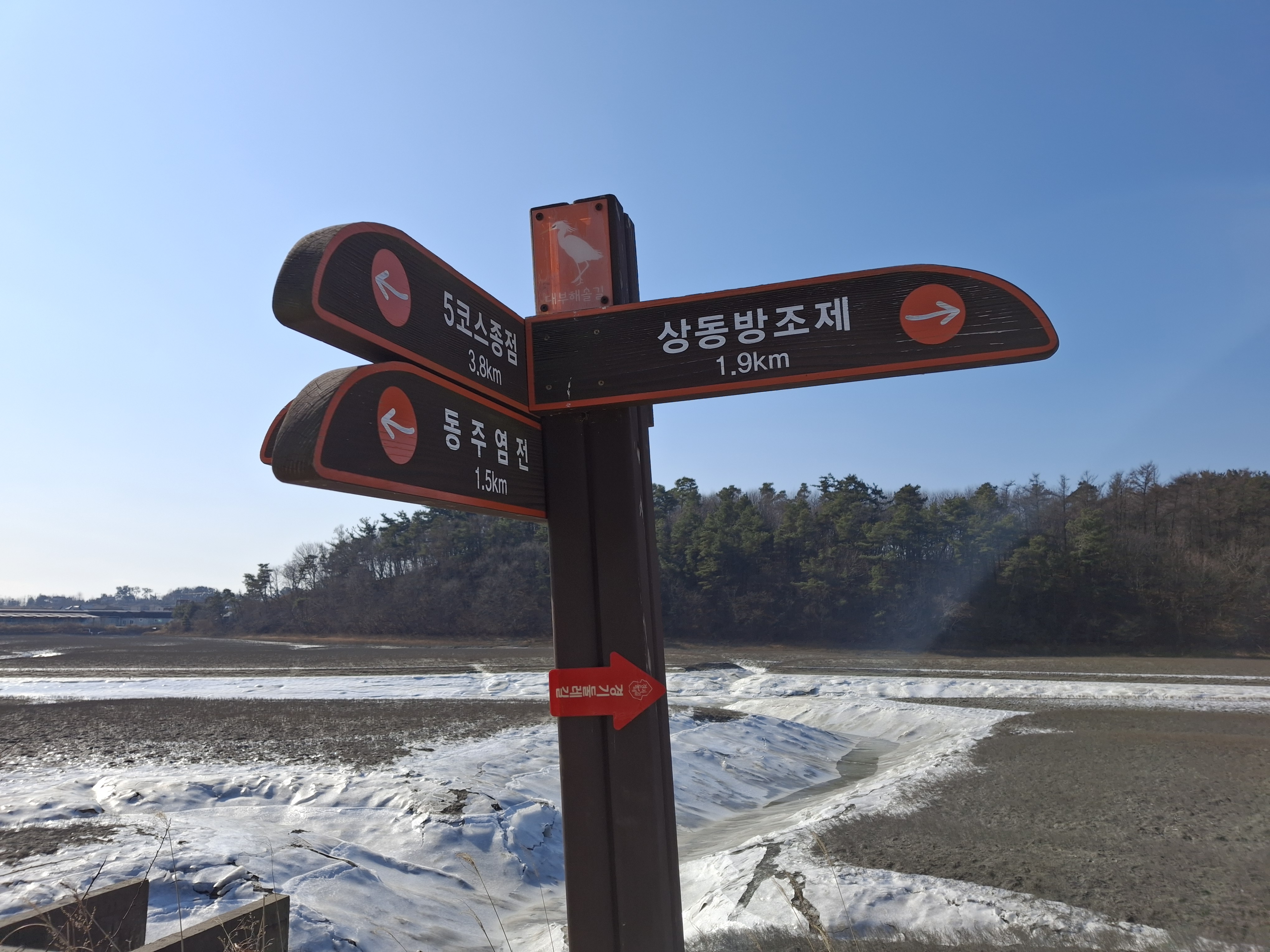 고랫부리 람사르습지 보호지역 → 해솔길 실로암팬션 → 브라보야구장 (4.6 k) → 상동방조제 →