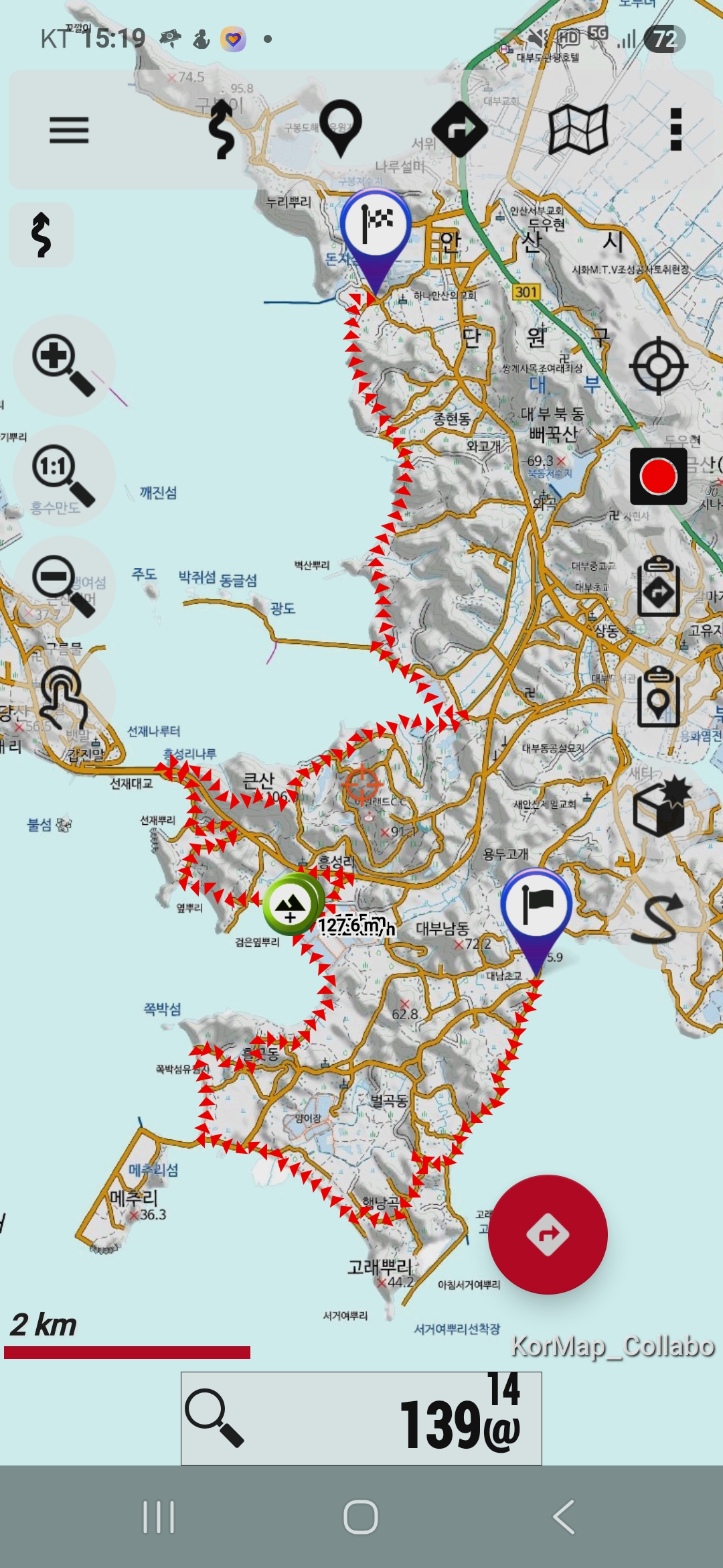- 종점 : 안산시 단원구 대부북동 642-267 독도바다낚시터 건너편