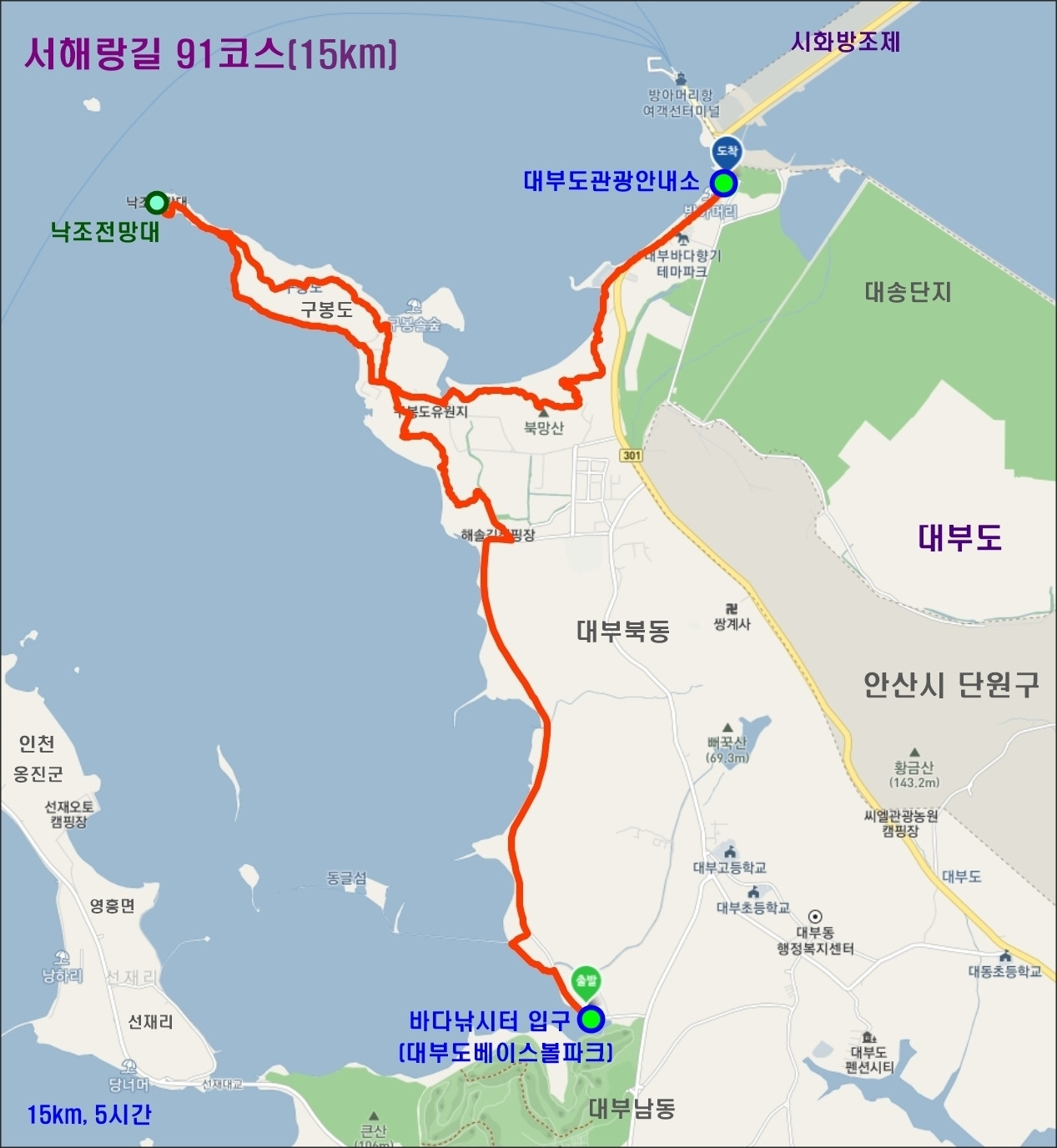 - 종점 : 안산시 단원구 대부북동 1985 대부도 관광안내소